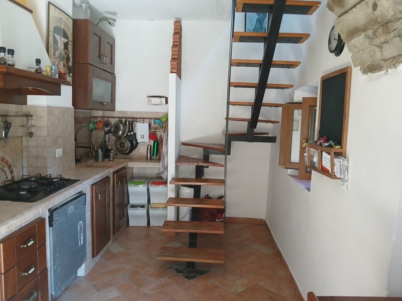 Al piano terra si trova un' accogliente cucina in muratura che ci introduce allabitazione; salendo al primo piano abbiamo un ampio soggiorno con camino e stufa a pellet che si apre verso il giardino posteriore di circa 70 mq e verso un grazioso spazio verde anteriore. Da qui, una scala in pietra conduce al terreno di proprietà di circa 5.000 mq, che circonda labitazione offrendo privacy e una splendida vista sulla vallata.