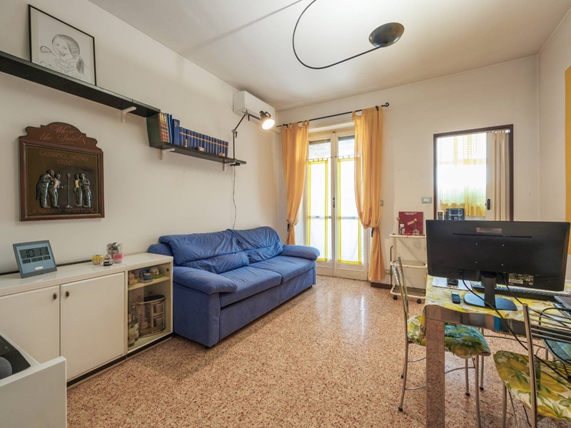 ingresso, soggiorno/pranzo, cucinotta e balcone verandato con affaccio sull'interno cortile, una camera da letto matrimoniale con balcone, un bagno, un ripostiglio ed una cantina al piano interrato.