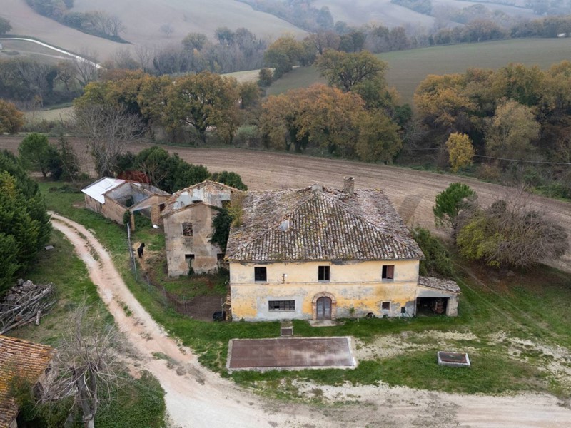 INTERO COMPENDIO IMMOBILIARE FORMATO DA CAPANNONI INDUSTRIALI, IMMOBILI RESIDENZIALI, CASA COLONICA E TERRENI AGRICOLI IN VENDITA TRA ARCEVIA E COLLE APRICO.