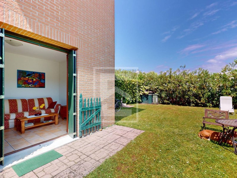 Lingresso conduce a unampia e luminosa zona giorno con accesso diretto al primo giardino privato. Un disimpegno porta alla camera matrimoniale e alla camera singola, entrambe con uscita sul grande giardino sul retro, ideale per momenti di relax. A completare la disposizione interna un bagno finestrato con doccia.