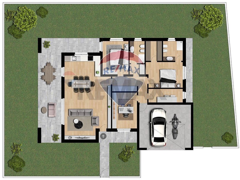 Completa la proprietà un ampio box auto doppio in larghezza, che offre spazio per due veicoli, garantendo comodità e praticità. Il giardino privato di 300 mq è il luogo perfetto per godersi momenti di relax allaria aperta, personalizzandolo secondo le proprie esigenze, che si tratti di unarea verde, di un angolo dedicato al tempo libero o di uno spazio per ricevimenti allaperto.