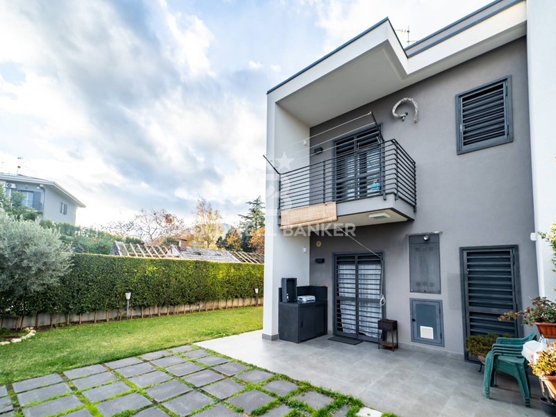 Lampio giardino angolare circonda lintero perimetro della villetta ed è dotato di impianto di irrigazione e illuminazione.