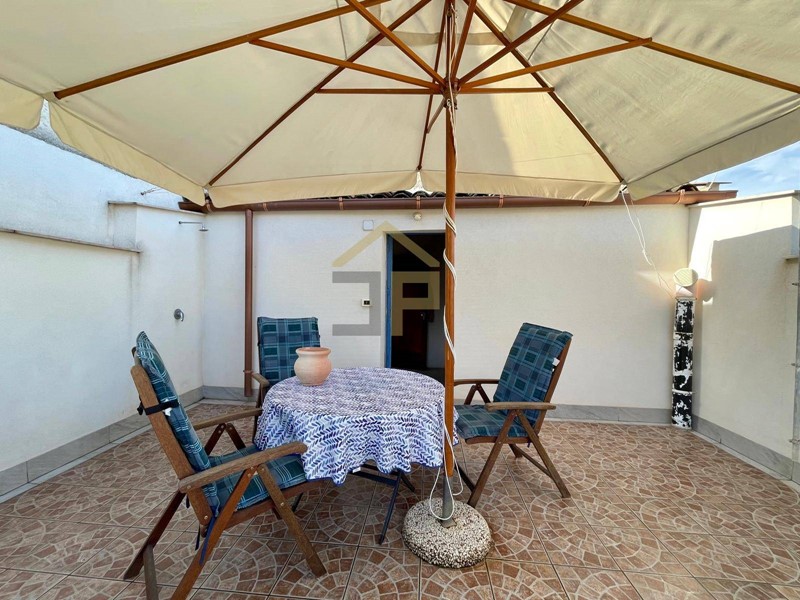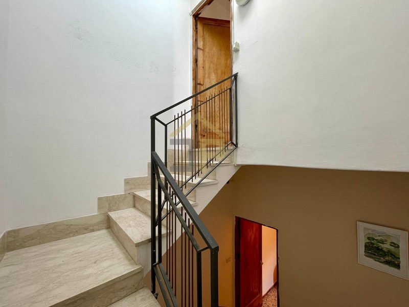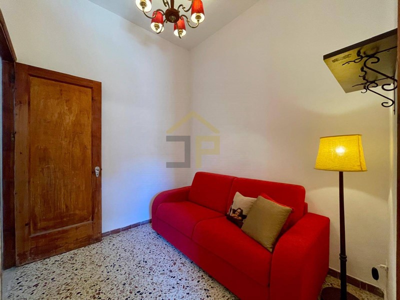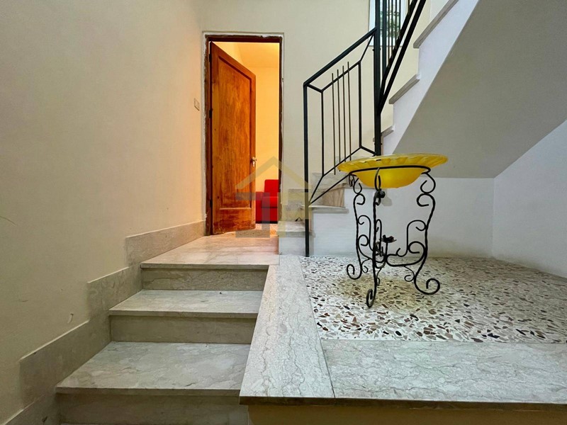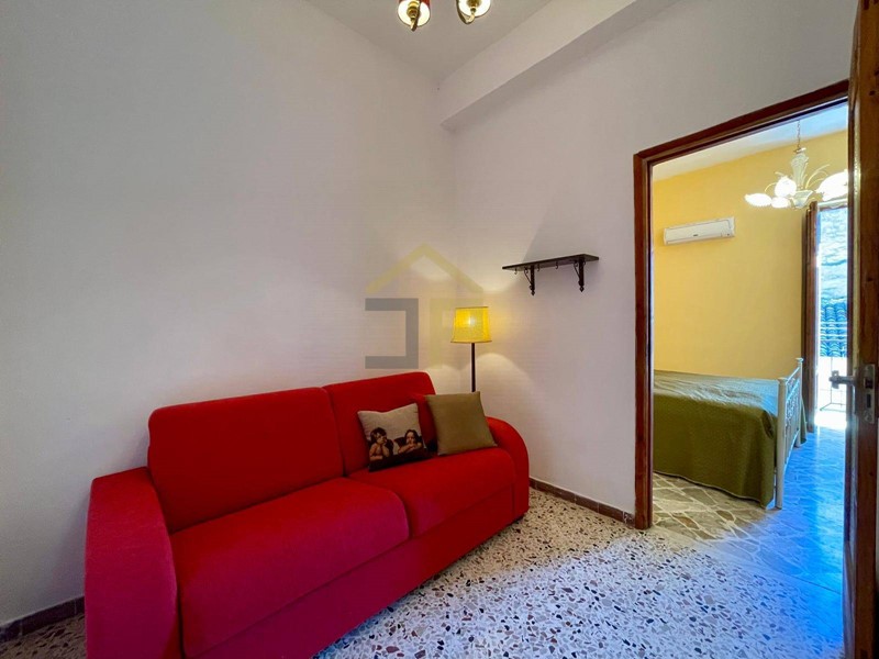 Attraverso la scala di marmo si accede al primo piano in cui è presente un soggiorno, un ripostiglio ed una camera matrimoniale con balcone dotata di climatizzatore perfetto per garantire il massimo comfort durante le calde giornate estive.