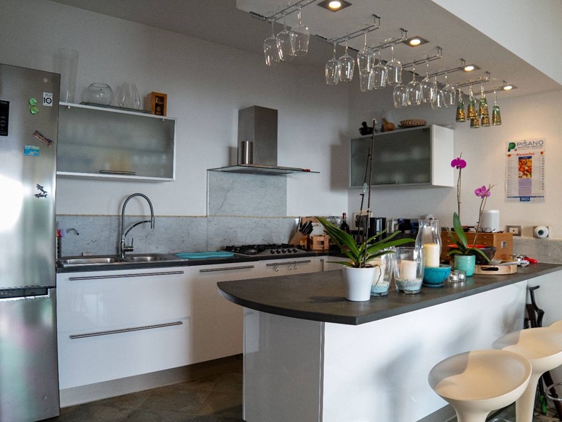 Il cuore della casa si apre su un ampio salone vista mare, luminoso e scenografico. La cucina con sala da pranzo, collegata da una grande portafinestra, conduce direttamente al terrazzo e al giardino fronte mare, perfetti per pranzi allaperto e momenti di relax. Il piano ospita inoltre due camere da letto, un bagno e una stanza lavanderia.