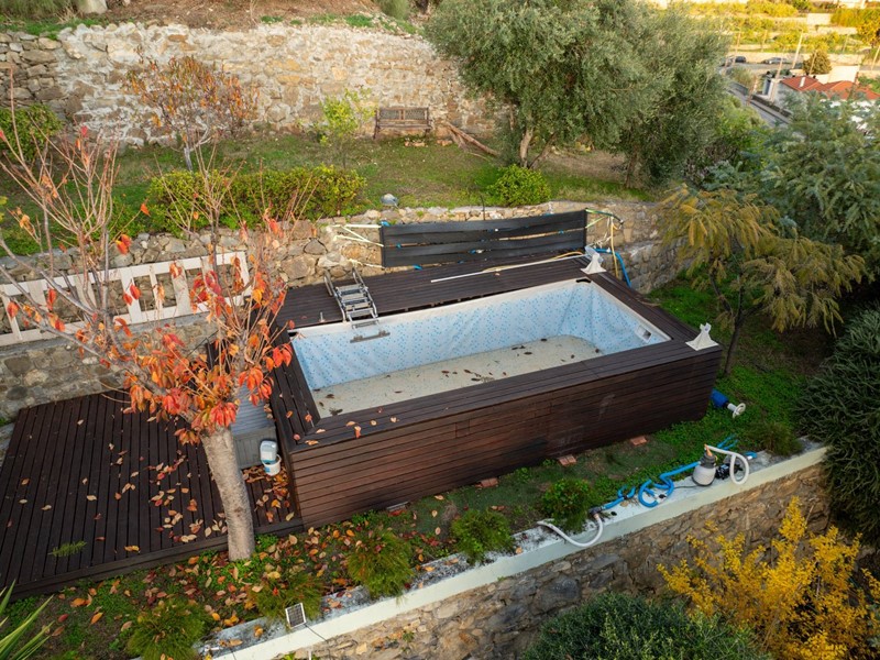La proprietà gode di una vista mare aperta e dominante, un affaccio privilegiato su una delle baie più affascinanti della zona, con il blu che accompagna ogni momento della giornata.