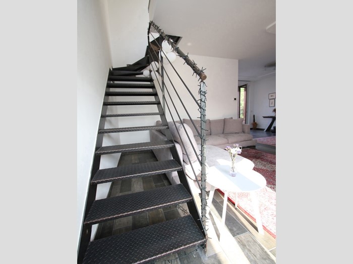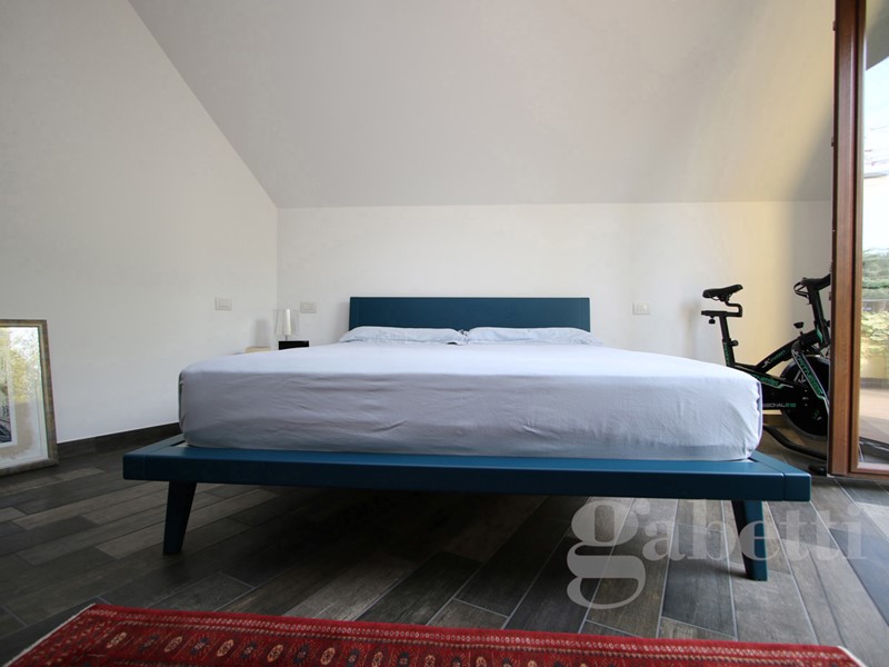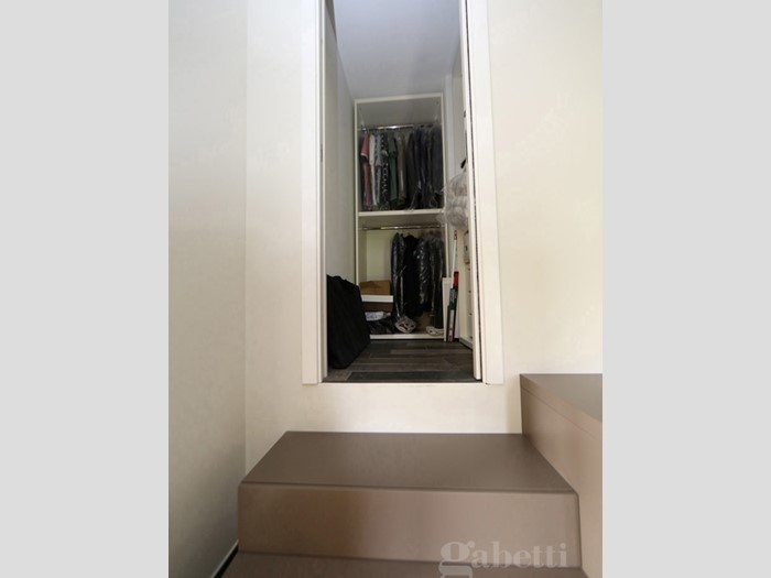 Dal soggiorno, attraverso una moderna scala in metallo si raggiunge il quarto piano mansardato che attualmente ospita una camera da letto matrimoniale con ripostiglio/ cabina armadio dotata di esposizione su terrazzo di 40mq e bagno padronale con vasca; le dimensioni consentono di creare un'ulteriore camera da letto.