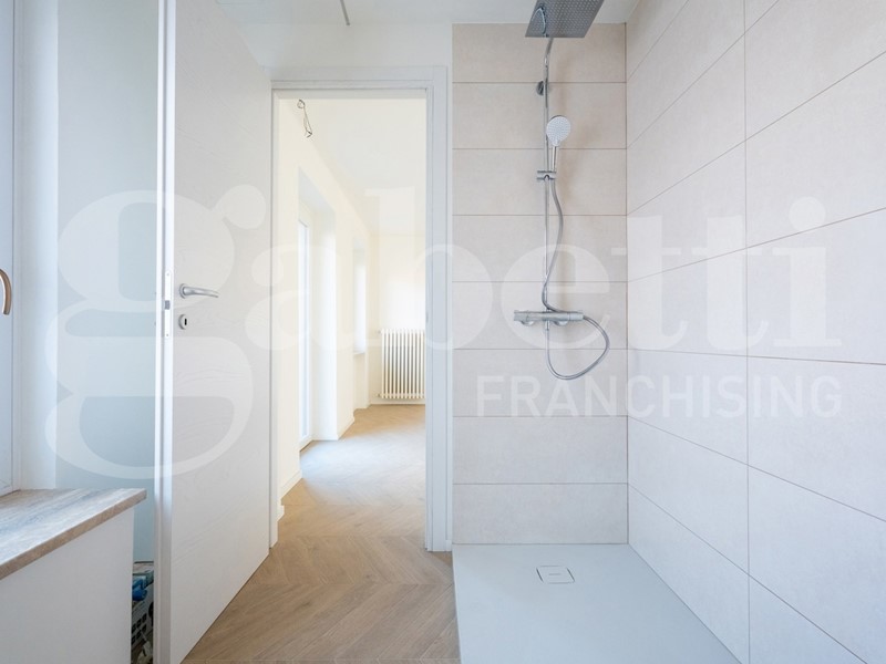 Le due camere da letto offrono ampi spazi per il riposo e il relax, mentre il bagno principale e il bagno di servizio garantiscono la massima comodità per tutti gli abitanti della casa. L'appartamento vanta anche un luminoso studio, perfetto per chi necessita di uno spazio dedicato al lavoro o di una terza camera da letto.