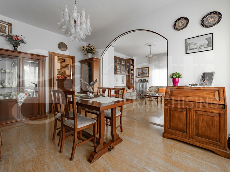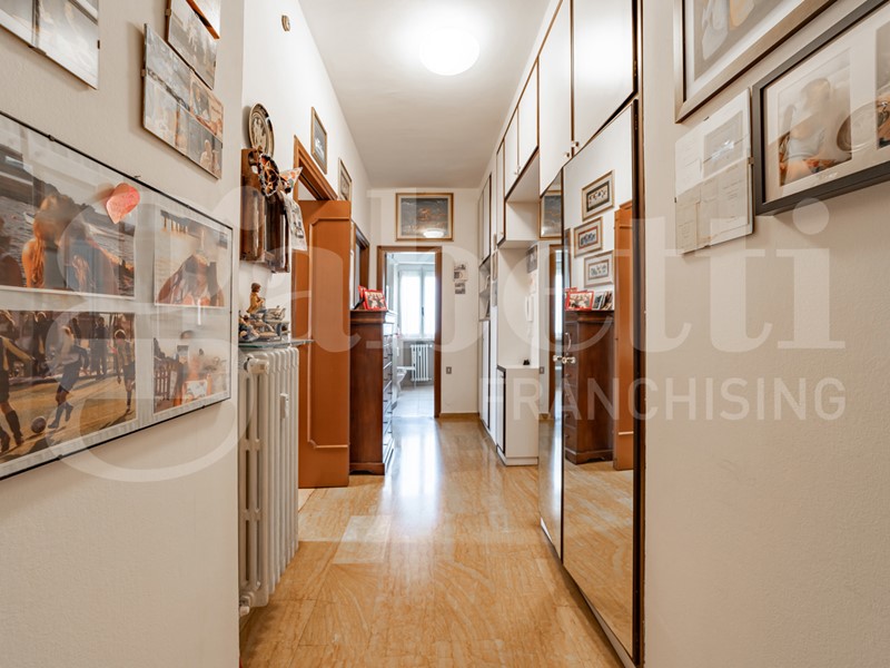 Le condizioni interne sono buone, con serramenti in alluminio anodizzato e doppi vetri che garantiscono comfort e isolamento. Completa la proprietà un box auto, elemento di grande valore in zona.