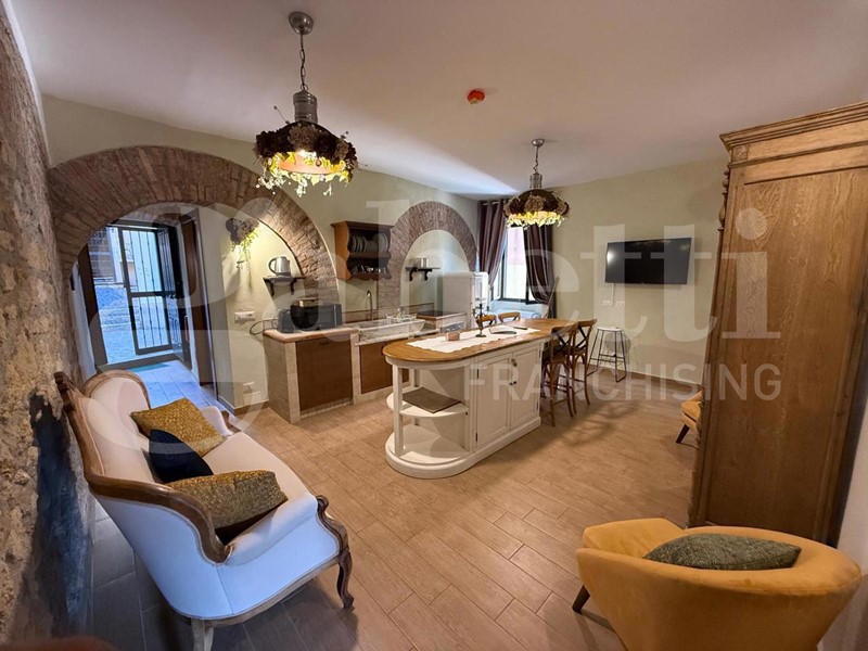 BORGO MEDIOEVALE - Tre locali ristrutturato. In pieno centro, proponiamo in vendita un delizioso e luminoso appartamento posto al piano terra, composto da ingresso, comodo soggiorno con angolo cottura e penisola centrale, camera matrimoniale, cameretta e bagno con doccia, completano la proprietà un ripostiglio uso lavanderia. L'immobile si presenta completamente ristrutturato negli impianti e nella muratura, mantenendo uno stile originario e originale del suo tempo, gli infissi sono in alluminio con doppio vetro, persiane in pvc e zanzariere in tutte le finestre, porta blindata e cancelletto in ferro. Porte interne in legno, condizionatori inverter caldo/freddo. Piano cottura elettrico in muratura, elettrodomestici ad incastro.