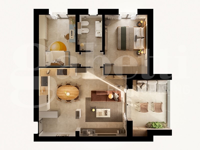 Le immagini sono state realizzate sulla base del progetto esecutivo con finiture e materiali previsti nel capitolato delle opere.