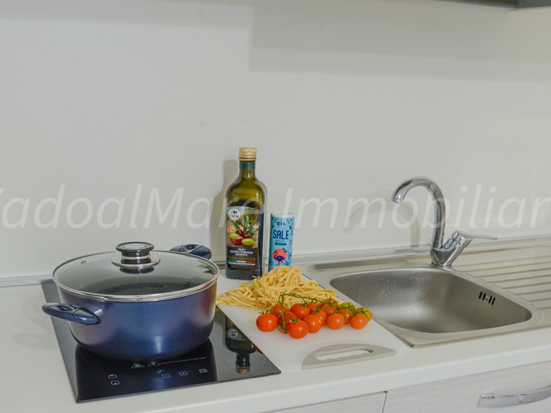 L’alloggio si trova al piano terra e si presenta con un comodo ingresso, una zona giorno luminosa con angolo cottura, una camera da letto matrimoniale, una seconda camera con due letti singoli e un bagno finestrato completo di doccia.