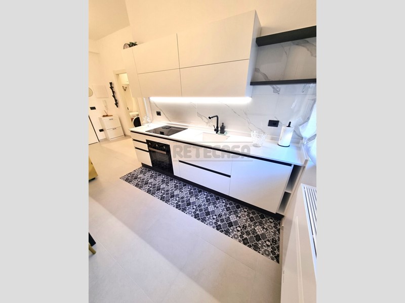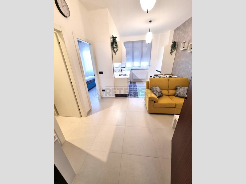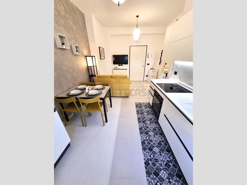 Pescara, via Galilei, a pochi metri dal mare e da Piazza salotto, disponiamo di elegante e moderno appartamento completamente ristrutturato e arredato. L'appartamento è situato al 3° piano con ascensore, così composto: ingresso soggiorno con angolo cottura, camera matrimoniale, bagno con doccia e antibagno/lavanderia. L'appartamento è stato completamente ristrutturatome e mai abitato, arredato con mobili su misura e accessori, completo di tutti gli elettrodomestici (frigo congelatore, forno, piano a induzzione, lavastoviglie e lavasciuga), completo di tapparelle elettriche, zanzariere, climatizzazione caldo/freddo e tv 43" schermo piatto. Classe energetica: C - € 800 Si affitta solo a singoli o coppie referenziate con contratti a tempo indeterminato, no animali. Per maggiori informazioni :
