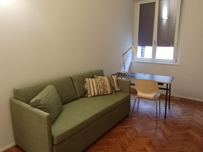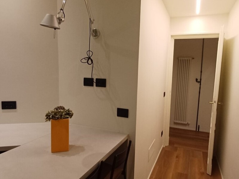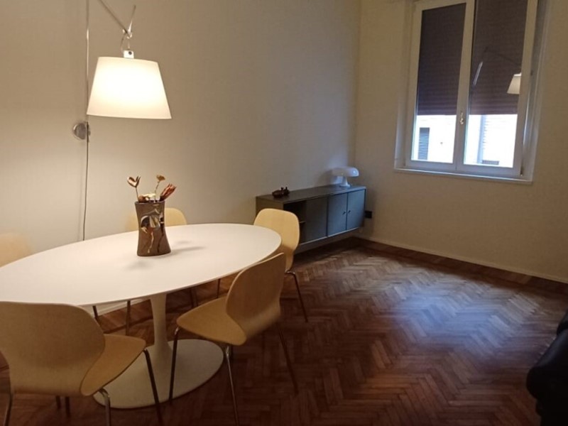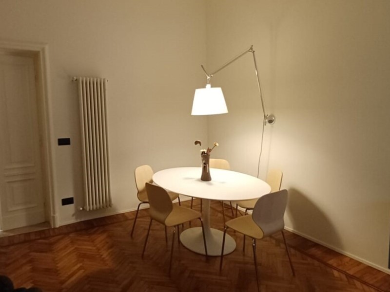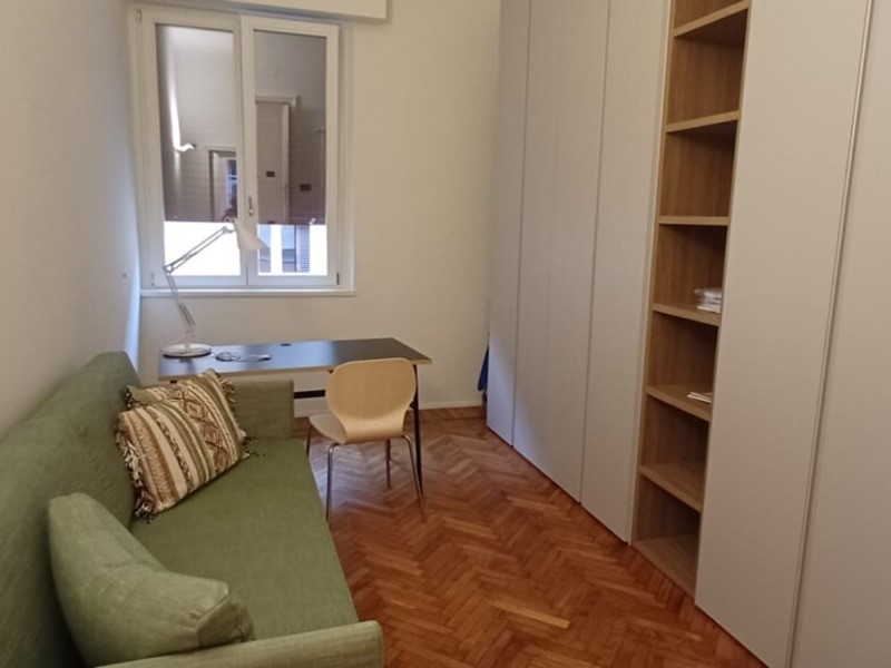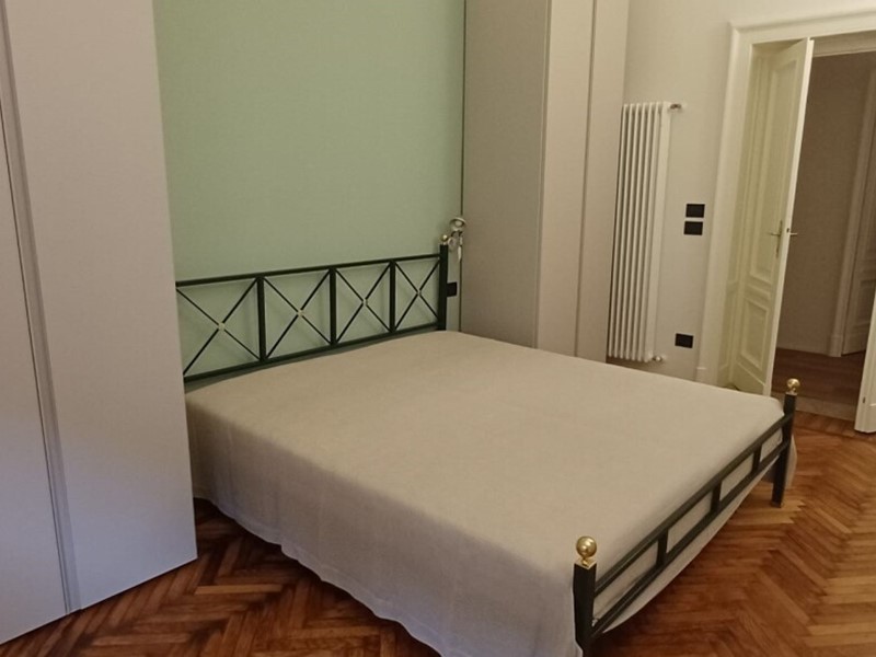In prestigioso palazzo storico servito da ascensore appartamento nuovo da impresa al piano quinto completamente ristrutturato e arredato con ottime finiture ampio ingresso, soggiorno, cucina, camera, studio ( volendo seconda camera), doppi servizi, cantina, riscaldamento con contacalorie, aria condizionata, locale deposito biciclette al piano terra. No studenti, No property manager