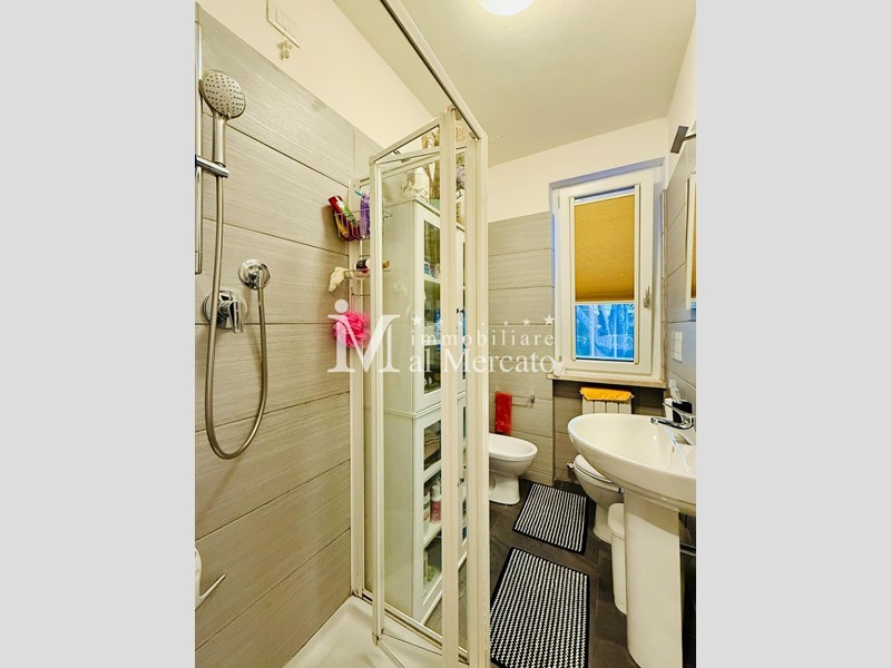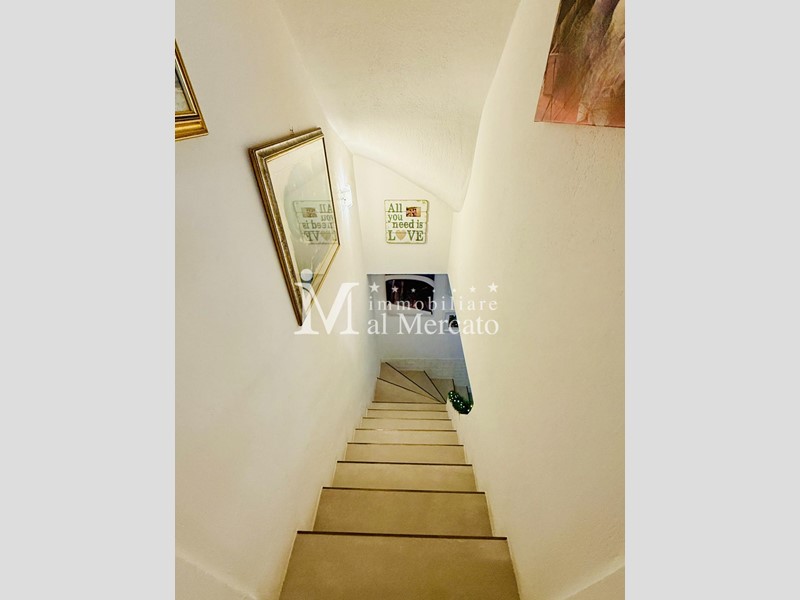 Ci accoglie il soggiorno con cucina a vista (che viene lasciata dai proprietari) e bagno con doccia al piano terra, al piano primo troviamo una matrimoniale ,una cameretta con balcone con bellissima vista e altro bagno.