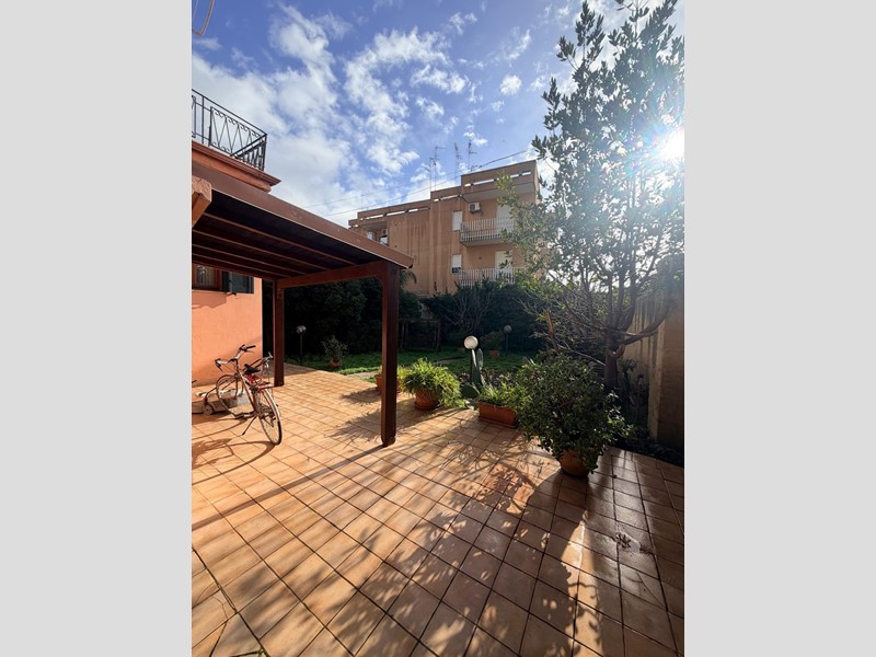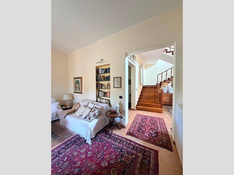 Il giardino, rigoglioso e curato, cinge la casa con la sua eleganza discreta. Zone verdi si alternano a superfici pavimentate dove sorgono pergolati attrezzati: spazi ideali per pranzi all’aperto, letture pomeridiane, serate estive tra amici.