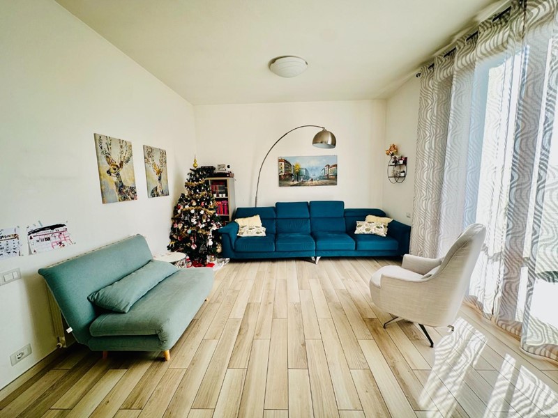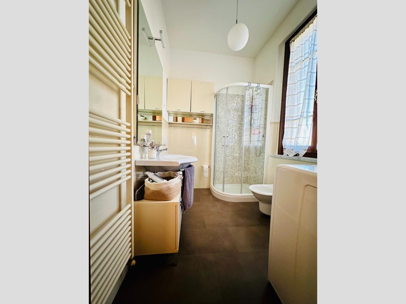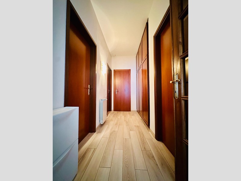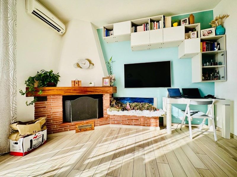 Si accede all’appartamento tramite un ampio portico che precede l’ingresso tradizionale, il reparto giorno è completato da un sala spaziosa e luminosa, dotata di CAMINO ed AMPIO BALCONE CON BELLA VISTA rivolta verso il verde circostante. Il reparto notte è composto da un ampio disimpegno con armadio a muro, una camera singola, una camera matrimoniale, un bagno con doccia, finestra ed attacco lavatrice ed infine un comodo ripostiglio con finestra.