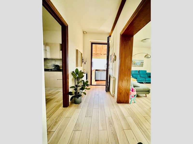 Trattasi di un LUMINOSO APPARTAMENTO CON GIARDINO, posto al piano secondo ed ultimo di bel fabbricato duplex con facciate, scale, portico di ingresso, balcone e tetto (compreso l’isolamento) ristrutturati.