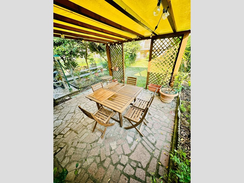 – GIARDINO DI CA 150 MQ sul quale insistono 7 alberi da frutto, una tettoia ideale per pranzare e cenare all’aperto, un forno, un porticato ed un locale ripostiglio finestrato (il tutto regolarmente condonato).