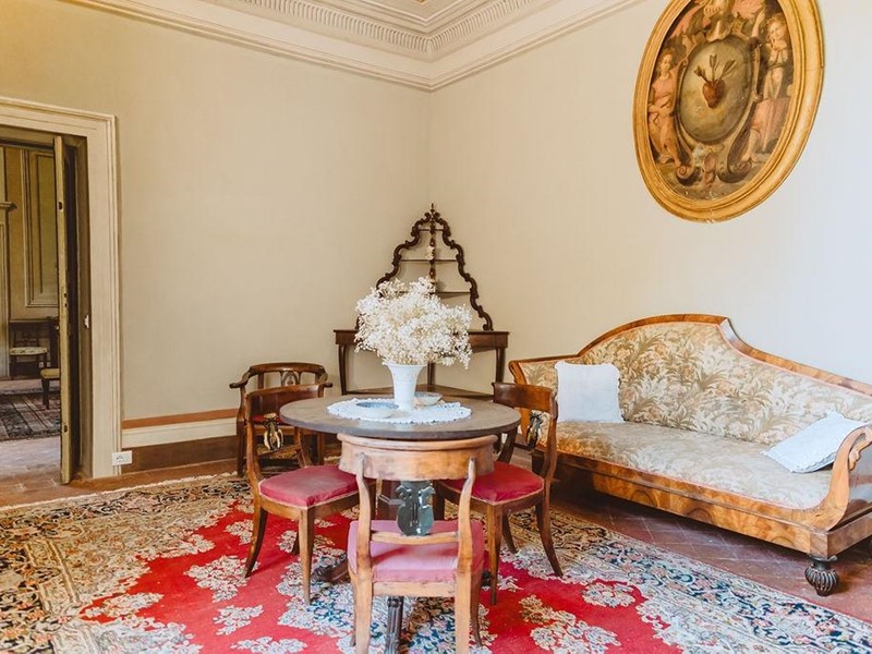 Gli ambienti interni sono espressione del raffinato stile lucchese, con linee sobrie ed eleganti, affreschi restaurati, dipinti d’epoca e arredi storici che donano alla villa un’atmosfera senza tempo.