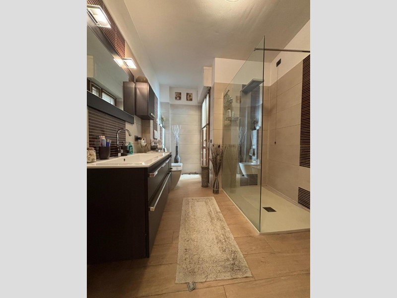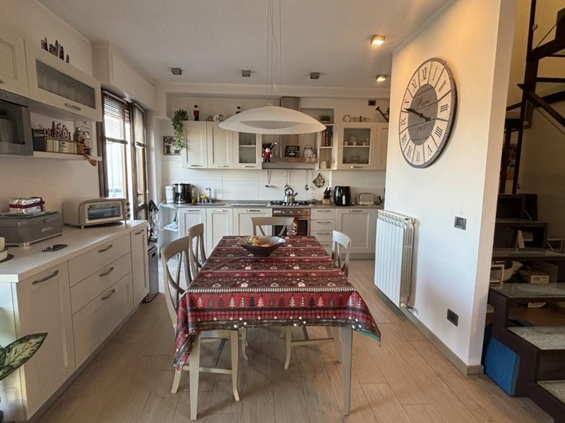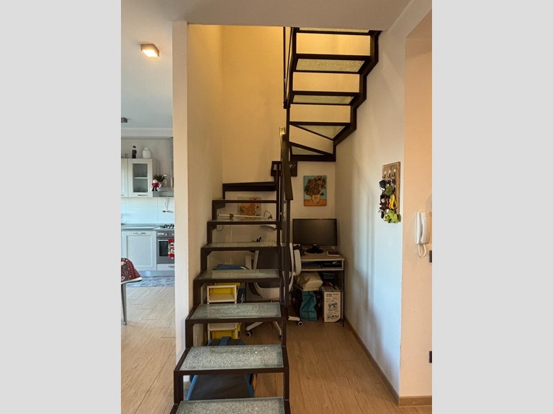 Dal soggiorno, mediante scala d'arredo in metallo e cristallo, si accede ad una luminosissima zona sottotetto/mansarda completamente rifinita dove si trovano due camere da letto ed un bagno completo e finestrato. Tutta la parte sottotetto gode dell'uso esclusivo di una grande terrazza di mq 30.