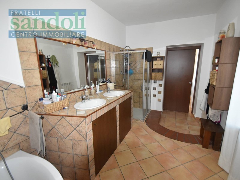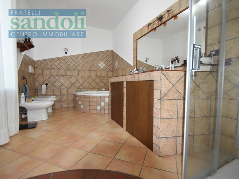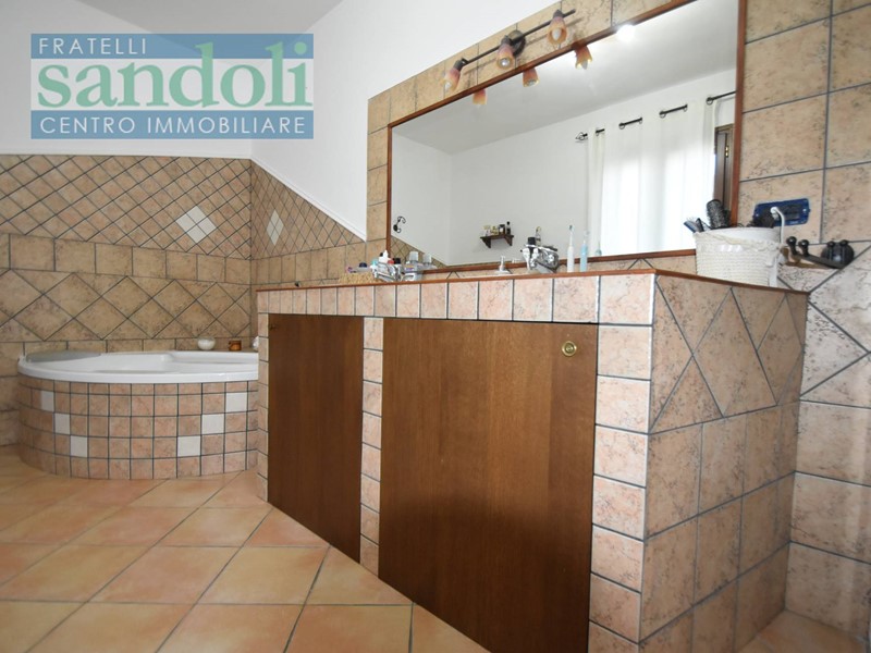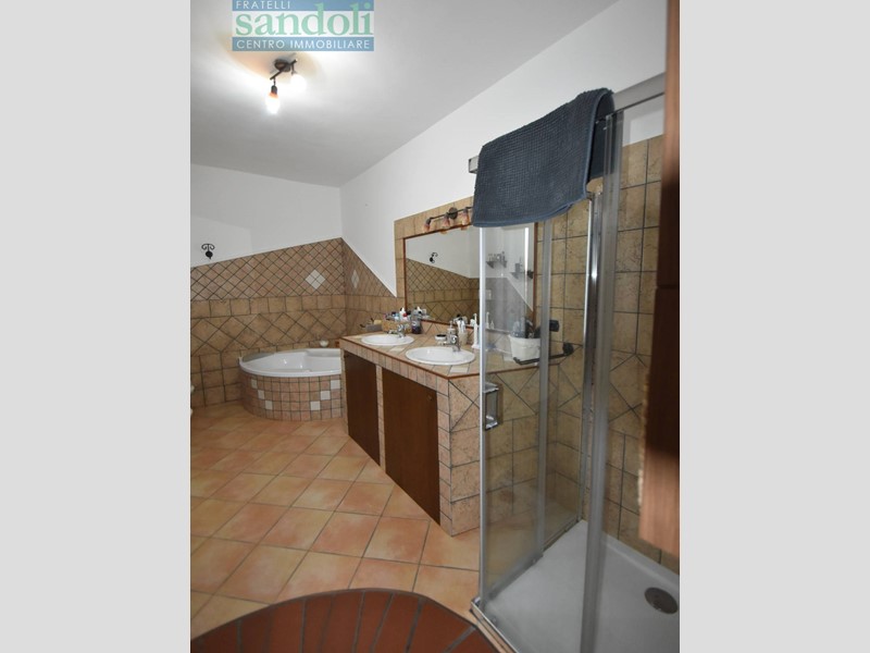 Proseguendo lungo il corridoio sono presenti poi due grandi camere a completare la zona notte ed un bagno, introvabile, di grandi dimensioni, con box doccia, vasca angolare totalmente rivestita in mattonelle a mosaico e doppio lavandino in murature.
