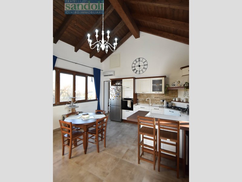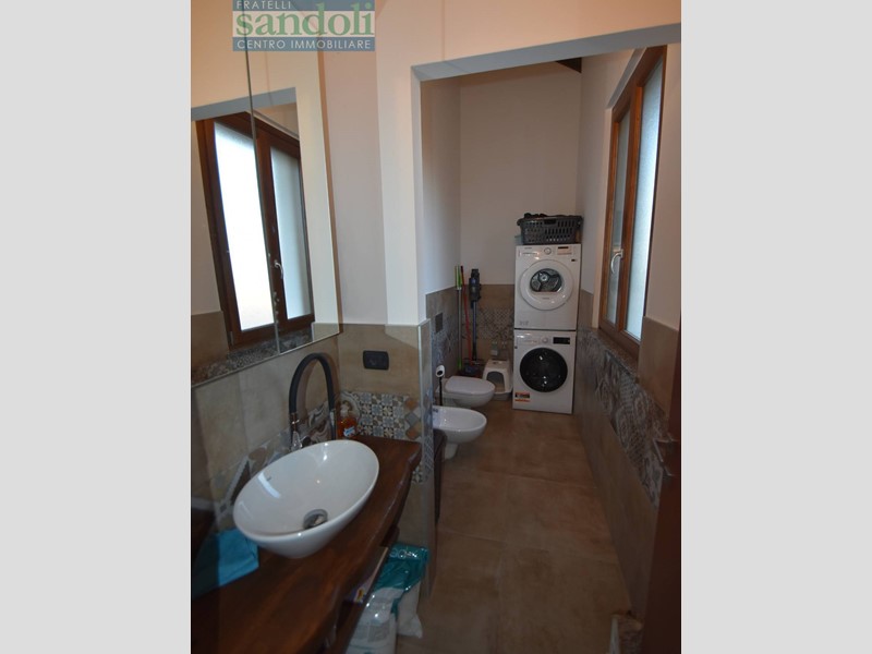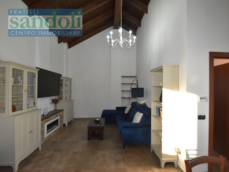 Al piano terra, attualmente adibito ad appartamento, ma ideale anche da utilizzare come un'attrezzata taverna, troviamo un bel soggiorno con camino a legna, un salottino, una camera matrimoniale ed il locale caldaia con annesso il bagno con box doccia.