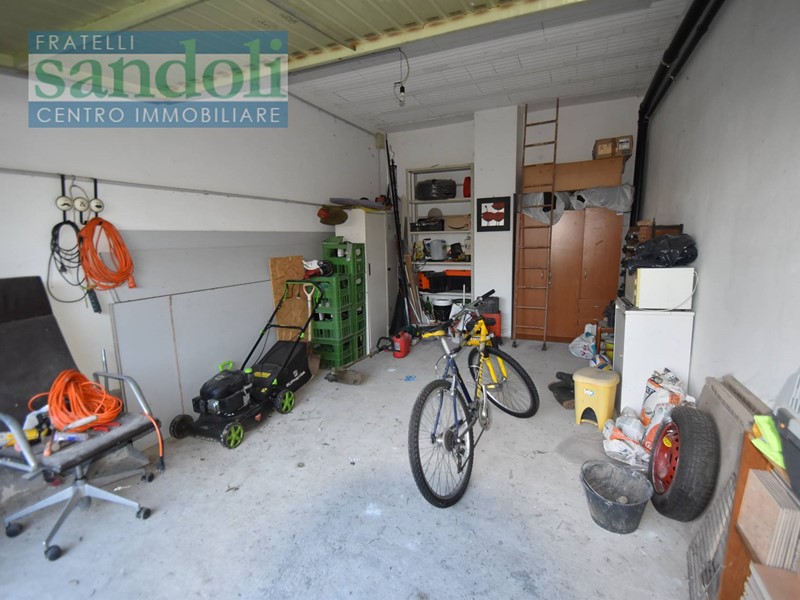 All'esterno, il box auto singolo e vari rustici, ideali per riporre attrezzi e oggetti di uso quotidiano.