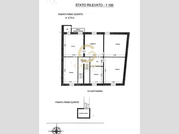 VIA SANT'ANDREA. NOSTRA ESCLUSIVA. In condominio al piano 4 senza ascensore, molto luminoso con affaccio esterno ed interno del fabbricato appartamento LOCATO di mq. 136 composto da ingresso in disimpegno, corridoio, cucina con veranda, 5 camere e 2 bagni con doccia di cui uno con finestra, completa la proprietà una terrazza a tasca al piano 5 accessibile dal vano scale. Riscaldamento autonomo. Caldaia installata nel 2025. Infissi in legno. L'appartamento viene venduto LOCATO con contratti di locazione residenziale suddivisi per ogni camera, per motivi di Privacy le camere non compaiono tra le foto ma sono visitabili. Rif. 2060