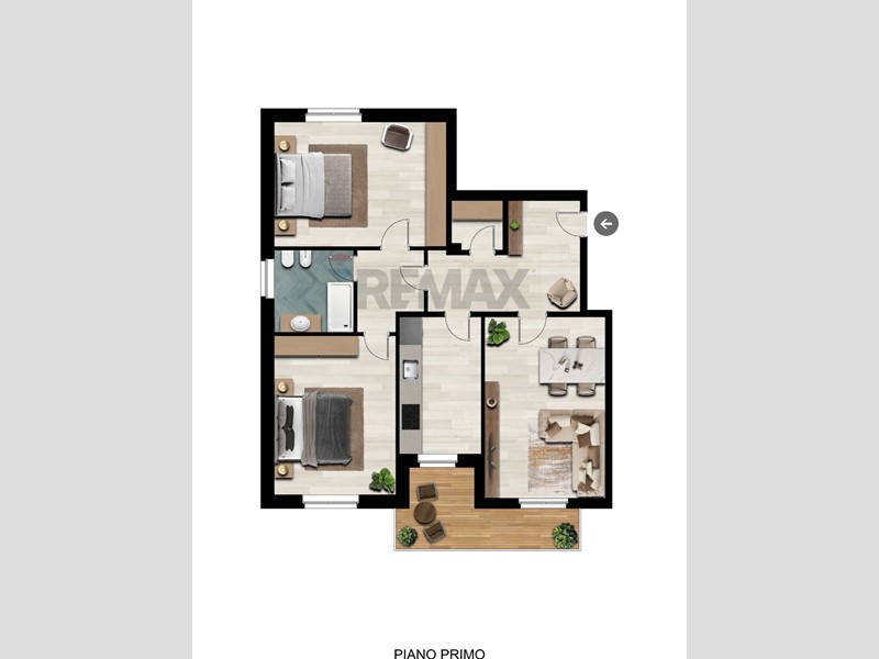 Gli ambienti sono ben distribuiti, con un soggiorno luminoso e due spaziose camere da letto matrimoniali, una cucina abitabile, il comodo ripostiglio e un bagno dotato di doccia, che è stato recentemente ristrutturato.