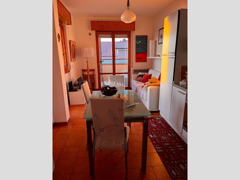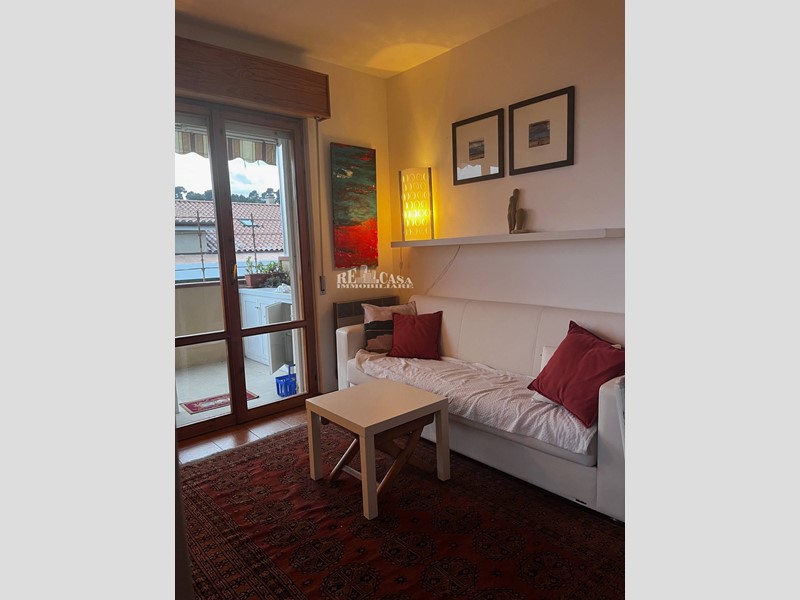 Lappartamento è cosi composto: ingresso su un luminoso soggiorno con angolo cottura, dal quale si accede a due terrazzini vivibili di 4 mq circa e con un vista mare e colline splendida (uno dei due è corredato da tende elettriche in pvc, offrendo la possibilità di essere usato anche nei periodi più freddi) . Nela zona notte abbiamo una due camere matrimoniali e il bagno finestrato e dotato di doccia e scaldabagno elettrico. Completa la proprietà con accesso a livello di strada un garage molto comodo di 17 mq. Esso viene venduto con gran parte della mobilia presente.