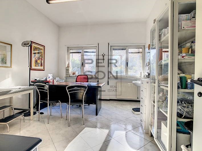 MEZZOLOMBARDO _A-UFF-130: VENDESI UFFICIO A REDDITO, di 160 MQ, commerciali al PIANO TERRA e composto da ingresso reception, 6 locali adibiti a studio, 2 bagni, ripostiglio. POSTO AUTO assegnato e parcheggi condominiali presenti. RESA ATTUALE 900 mensili, potenziale . 1.200.