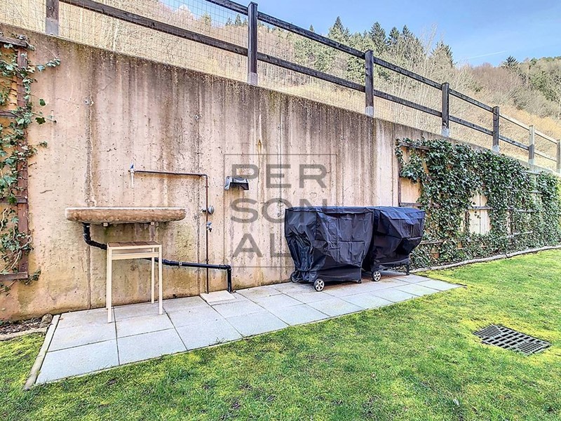 A piano seminterrato: AUTORIMESSA e 2 CANTINE (100MQ). AREA ESTERNA fronte strada pavimentata con cancello elettrico, prato e orto con piante da frutta di circa 700MQ.