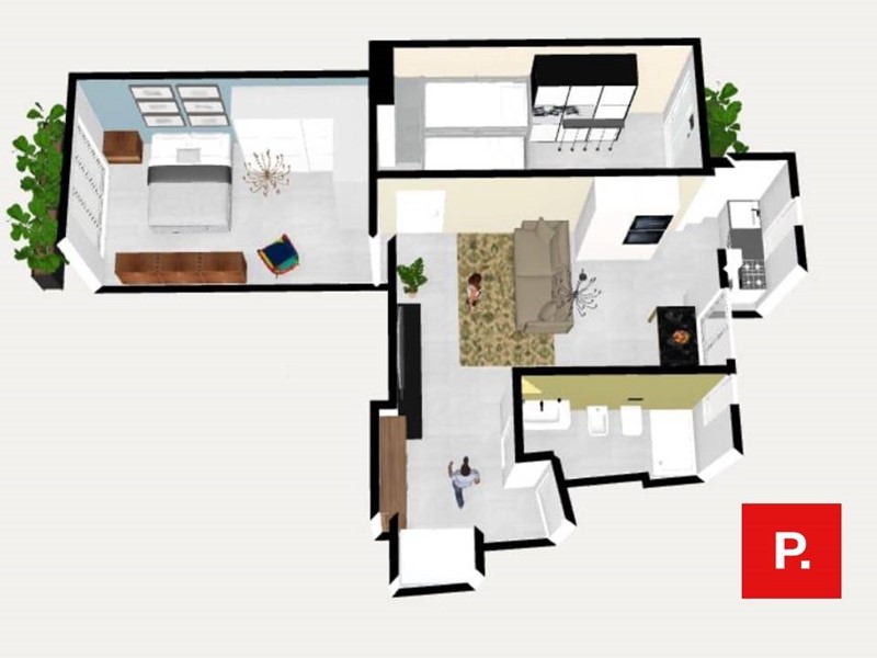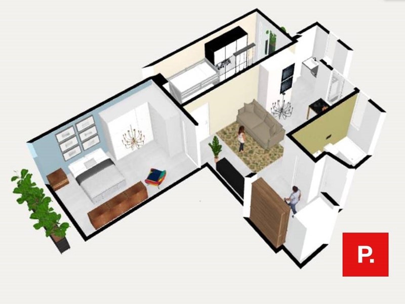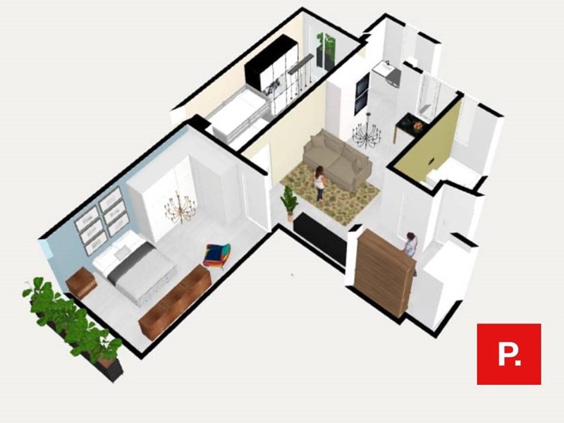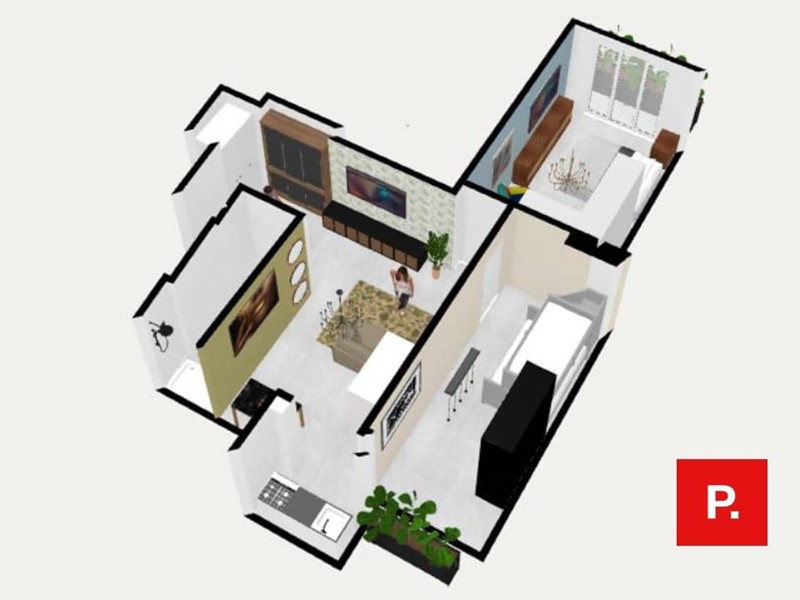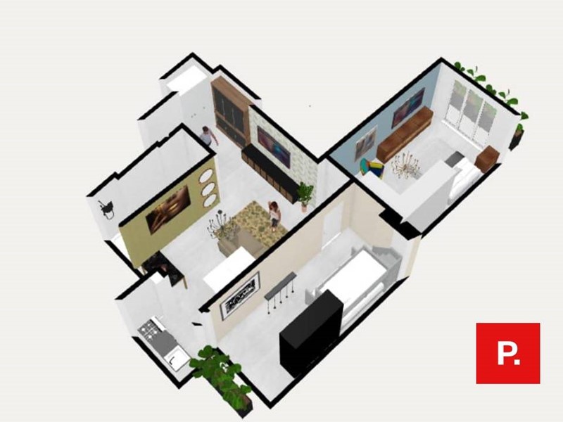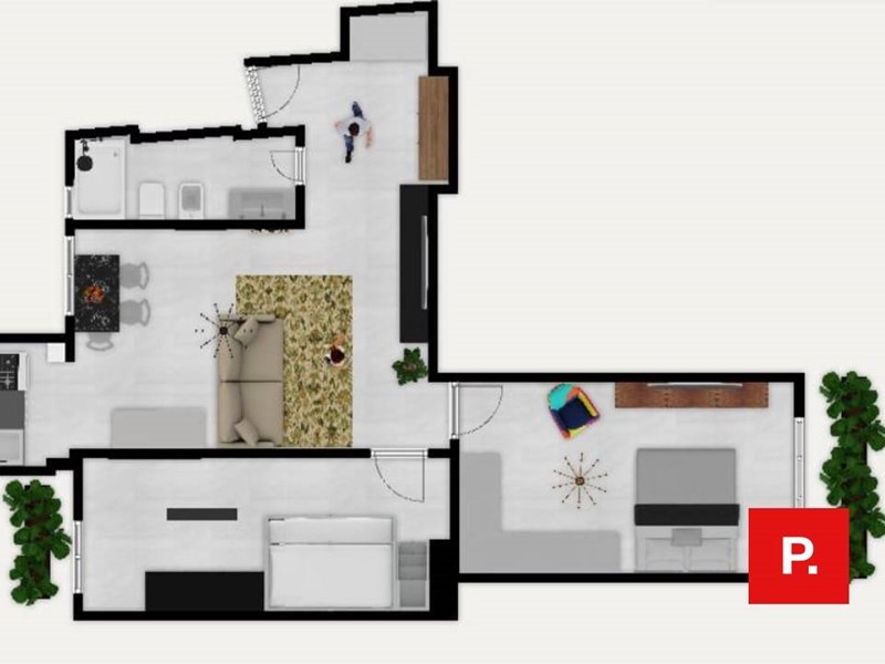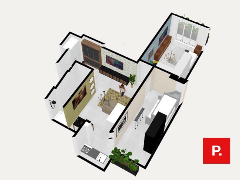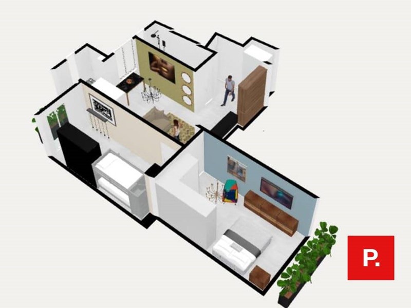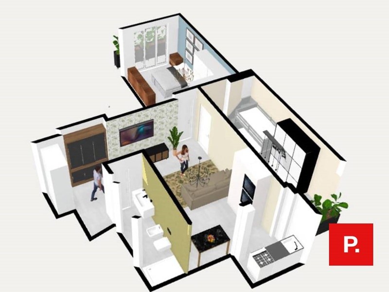 L'appartamento è composto da due camere da letto, cucinotto con tinello e un servizio.