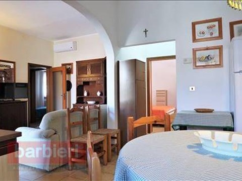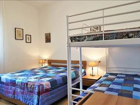 Dotato di ingresso indipendente e cortile privato pavimentato in cui posteggiare anche l'auto, è composto da un ampio soggiorno con angolo cottura affacciato su balcone in ingresso, disimpegno con split aria condizionata, bagno principale con box doccia, camera matrimoniale con castello e camera con tre singoli da una parte; terza camera da letto, attrezzata con matrimoniale più singolo e split aria condizionata, e secondo bagnetto di servizio (no doccia) dall'altra.