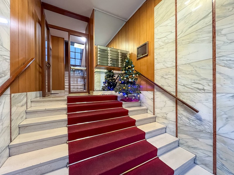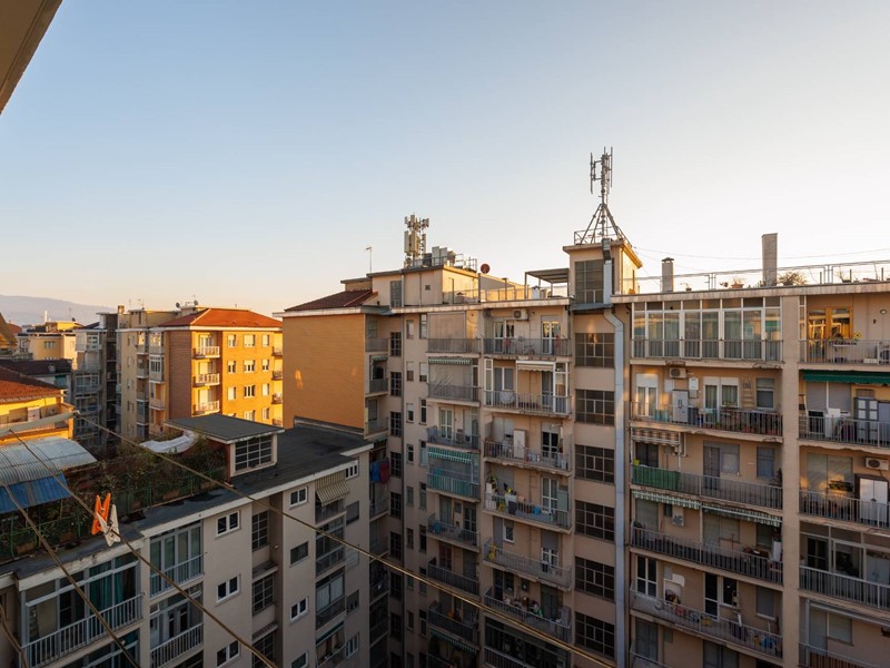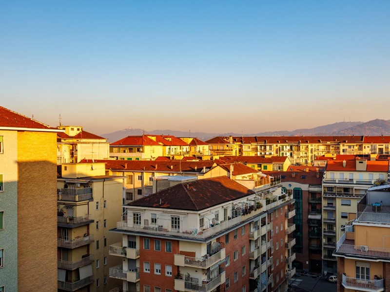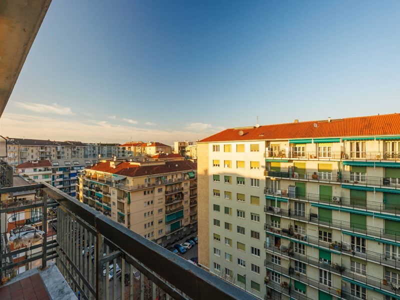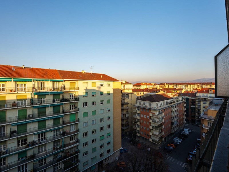 Luminoso appartamento di 78 mq c.a. con doppia esposizione e vista Superga collocato al nono ed ultimo piano di uno stabile degli anni Sessanta dotato di ascensore e servizio di portineria.