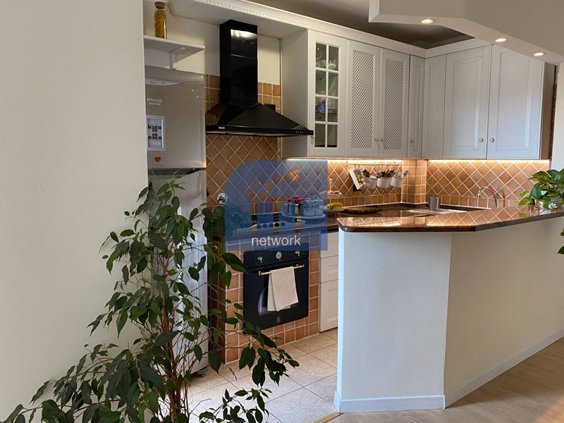 La cucina è in stile americano in muratura con mobili ed elettrodomestici, illuminazione sottopensile, bancone a isola e porta-finestra che si apre direttamente sul balcone. La cucina è completamente attrezzata: piano cottura e forno a gas (statico e ventilato), lavastoviglie nuova, frigorifero di grandi dimensioni, forno a microonde e un barbecue a gas Weber proprio fuori dalla porta, sul balcone, per cucinare comodamente e facilmente tutto l'anno.