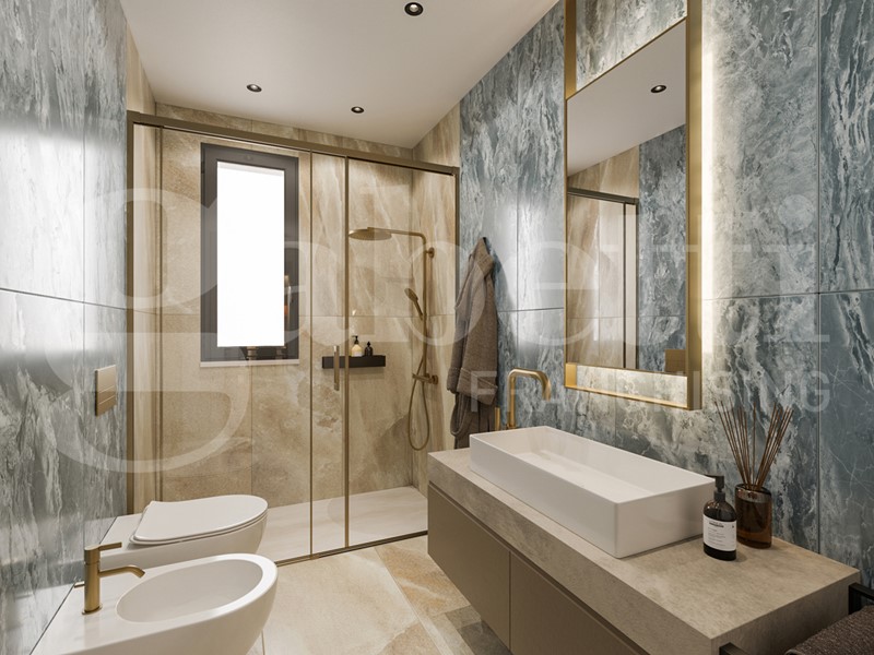 Il capitolato prevede, finiture di pregio quali pavimenti in ceramica di grandi formati, tapparelle motorizzate, riscaldamento a pavimento, tramite impianto con pompa di calore, predisposizione impianto aria condizionata, fotovoltaico dedicato per ogni singola unità.