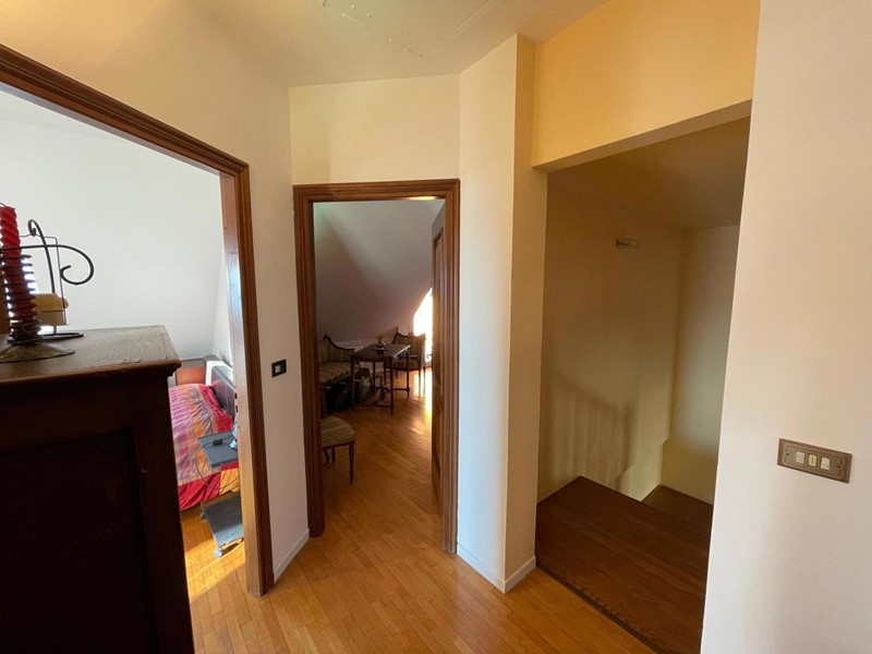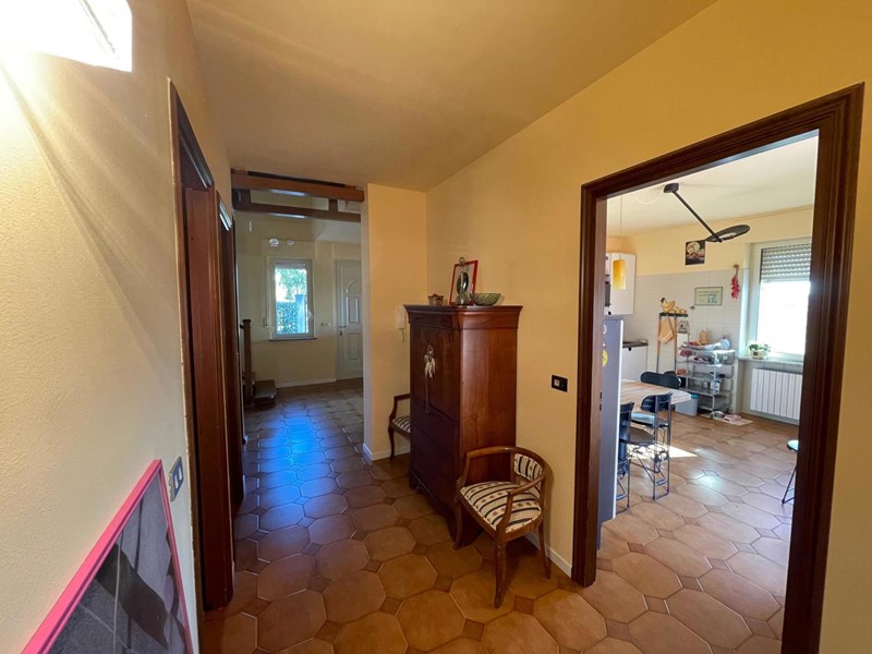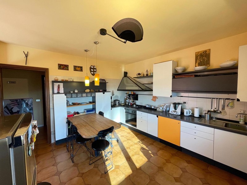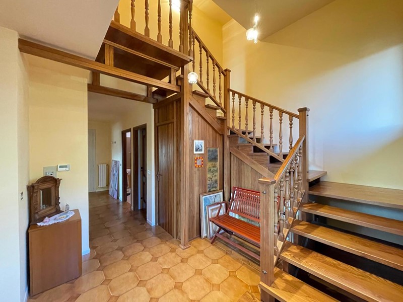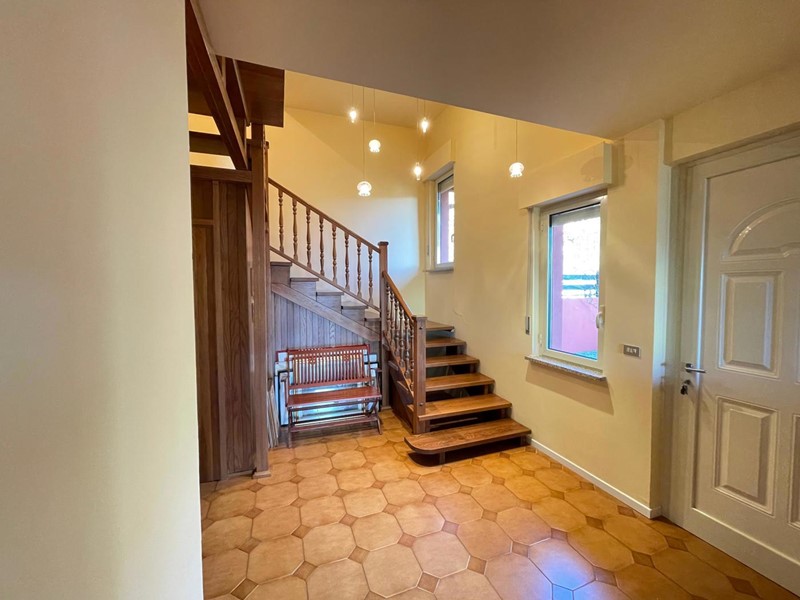 L'abitazione si sviluppa su due piani, il primo piano ospita una cucina abitabile, il bagno, due ripostigli, un disimpegno ed un ampio soggiorno; una magnifica scala in legno a vista ci accompagna al piano superiore dove troviamo un bagno e quattro camere da letto.