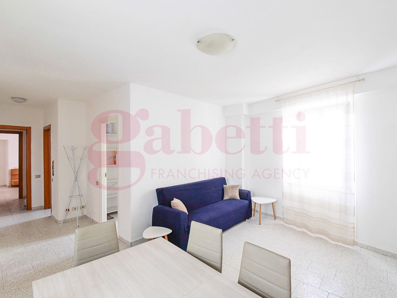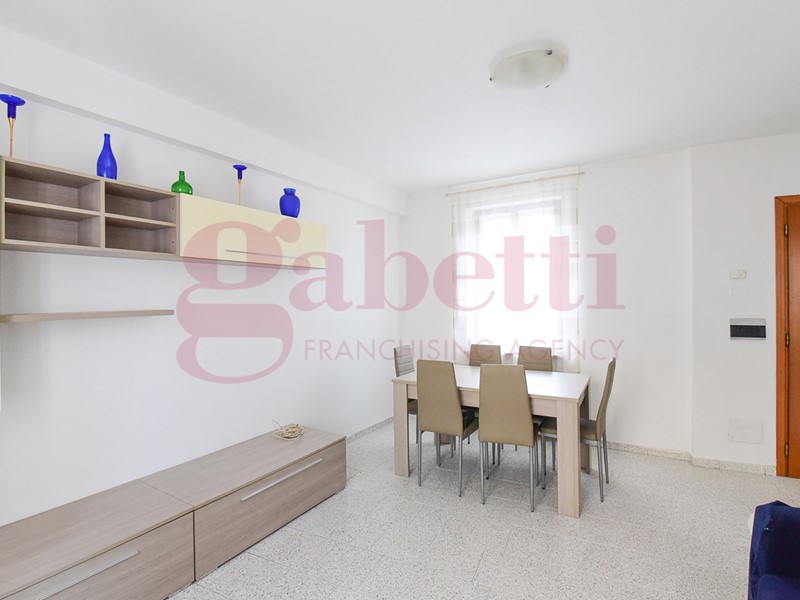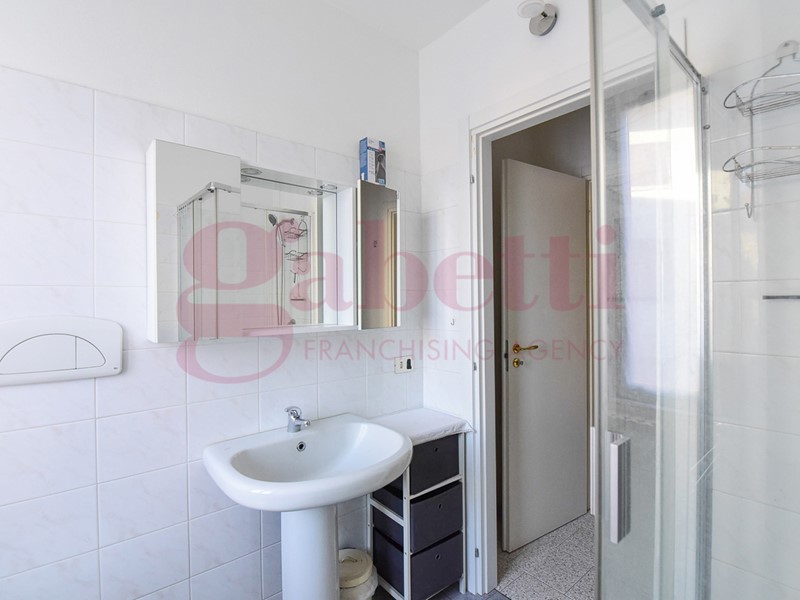 L'appartamento è composto da ampio soggiorno, balcone, cucina abitabile, bagno completo di box doccia, disimpegno che conduce alla zona notte dove troviamo una camera da letto matrimoniale ed un bagno cieco utilizzabile anche come lavanderia.