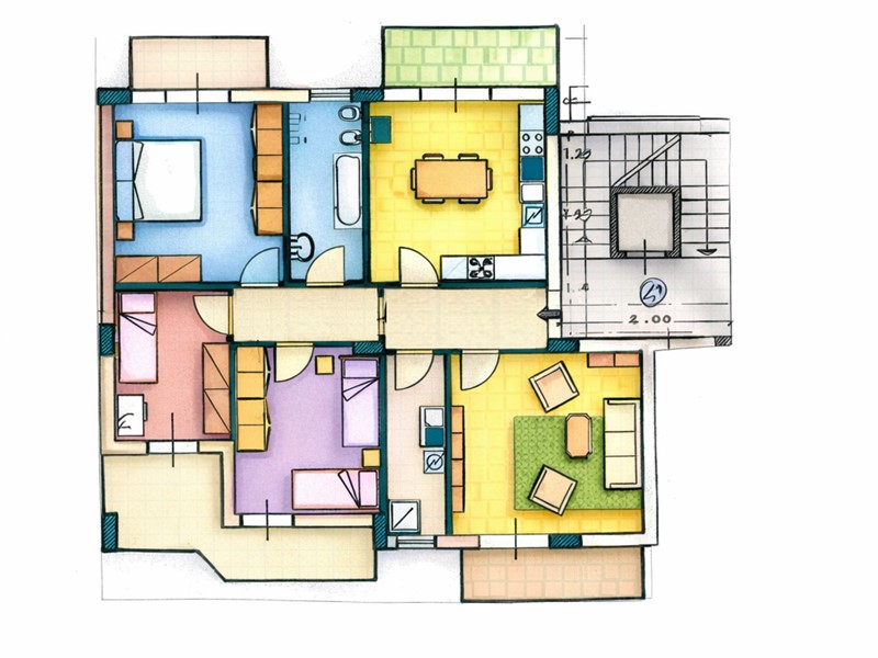 L'immobile si distingue per la generosità degli spazi interni ed è composto da ingresso, ampio salone, cucina abitabile, tre camere da letto e doppi servizi. Tutte le stanze dispongono di balcone, garantendo ottima luminosità e piacevoli affacci esterni.
