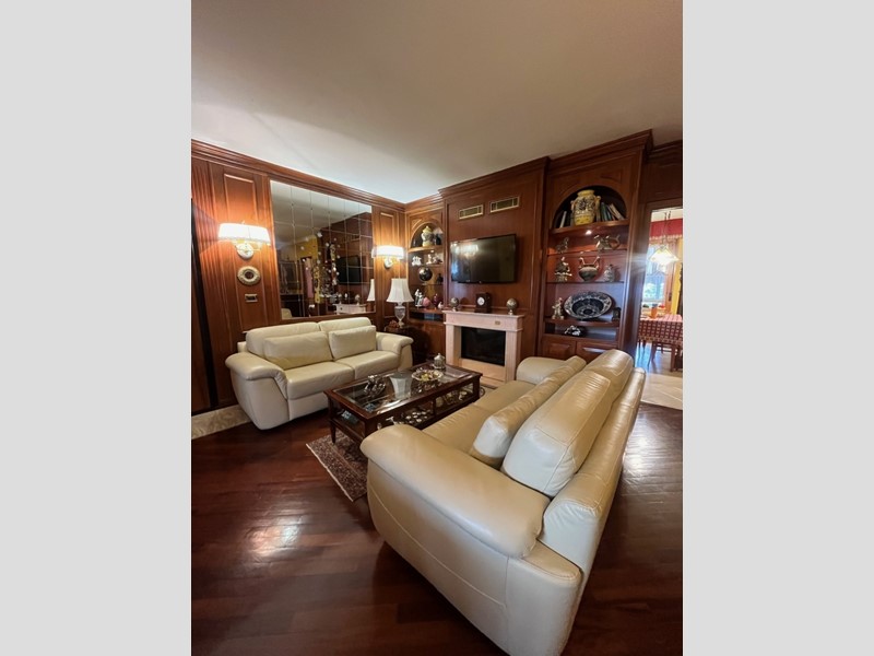 Ampio e raffinato salone con camino funzionante, boiserie in legno e zona pranzo