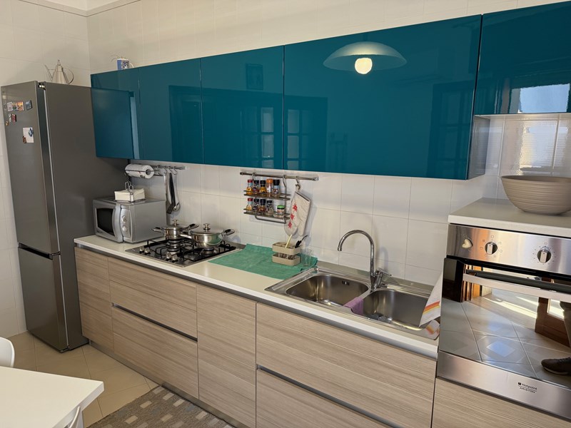 Appartamento di 108 m2, sito al secondo piano, compreso di garage con posto auto, con cisterna acqua, climatizzato, con vista mare, vicino al centro storico.