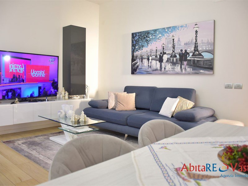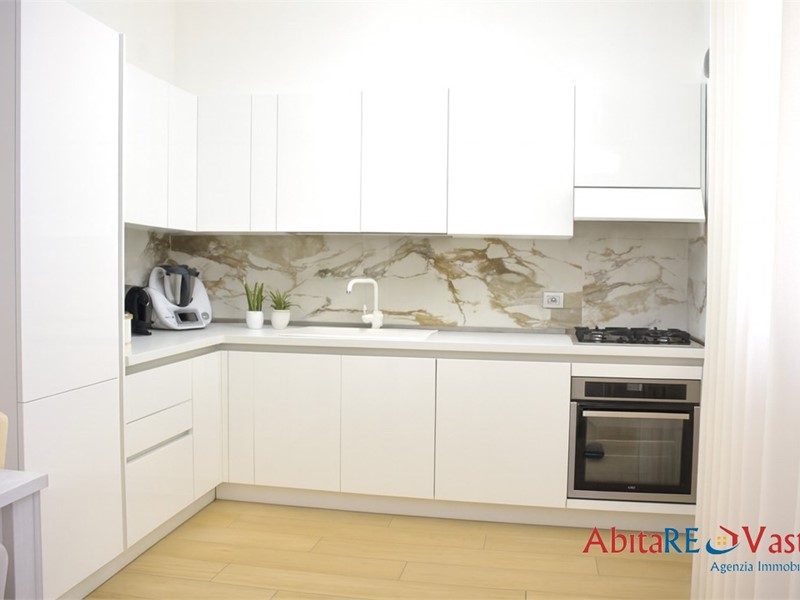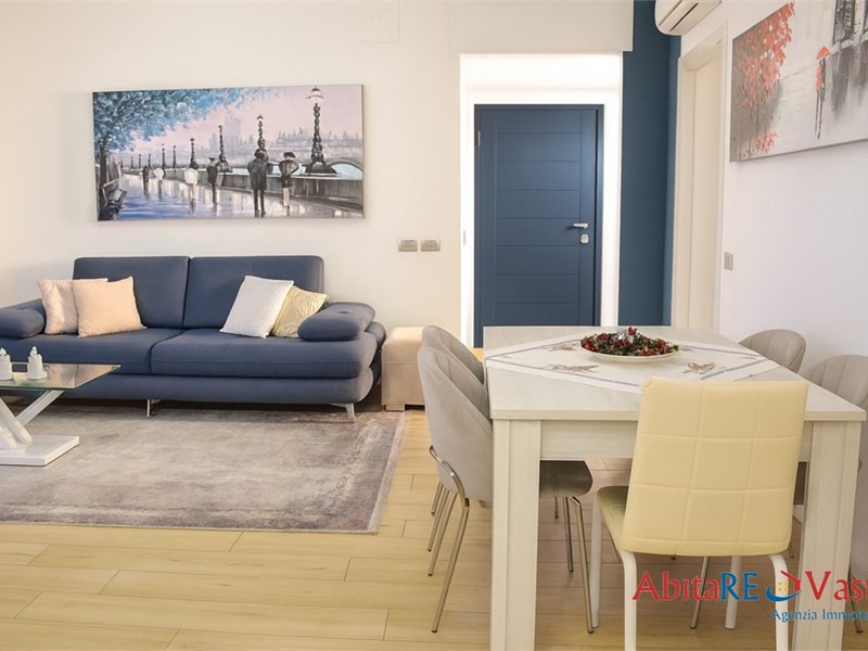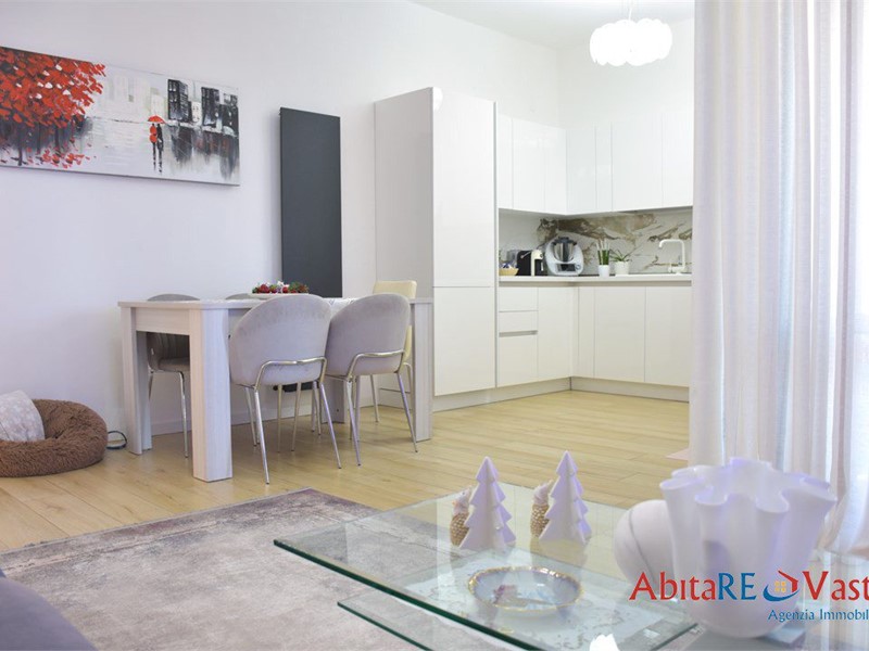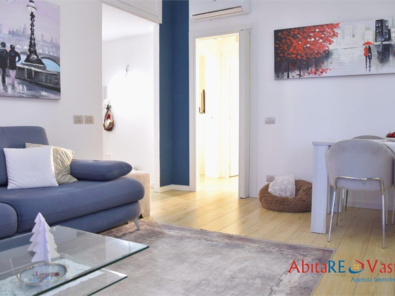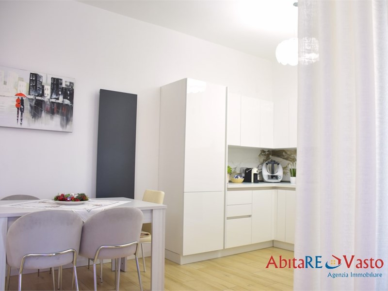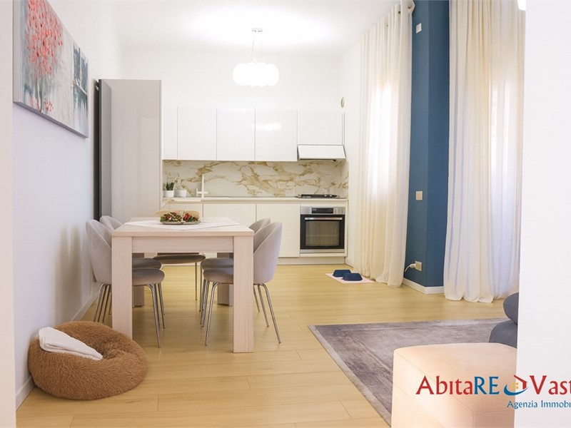 Vasto Marina - Centro, a pochi passi dal mare\nIn posizione centralissima e riservata, all'interno di una palazzina recintata, proponiamo in vendita esclusiva un appartamento al terzo ed ultimo piano, ideale per chi desidera vivere il mare tutto l'anno o godere di una raffinata casa per le vacanze. L'immobile, completamente ristrutturato nel 2024 e in perfetto stato di manutenzione, si presenta accogliente, luminoso e pronto da abitare. L'ingresso conduce a un ampio soggiorno con angolo cucina a vista, seguito da disimpegno, 2 camere da letto, bagno con box doccia e un terrazzo abitabile, parzialmente chiuso con comode vetrate, dal quale si apprezza una gradevole vista mare.\nDotato di riscaldamento autonomo, climatizzazione e posto auto coperto di proprietà all'interno dell'area condominiale. La vendita comprende tutti gli arredi, consentendo un immediato utilizzo senza ulteriori investimenti.\nLibero a rogito. Palazzina priva di ascensore. Una soluzione completa, curata e strategicamente posizionata, perfetta per chi sogna di abitare a pochi passi dalla spiaggia, senza rinunciare a comfort e qualità.\nTrattativa riservata in agenzia. - Maggiori Dettagli: Lavastoviglie, Porta blindata, Vista Mare, Rete ADSL, Climatizzato