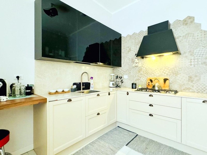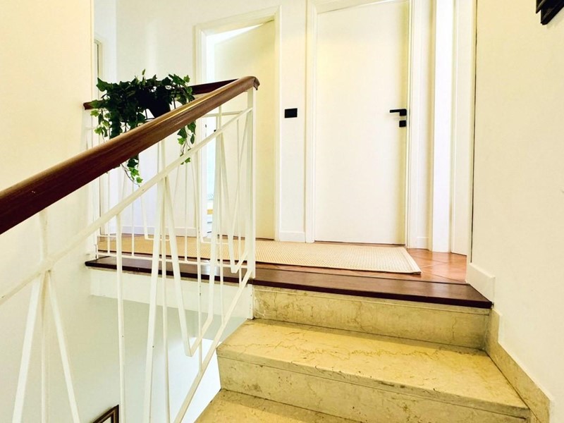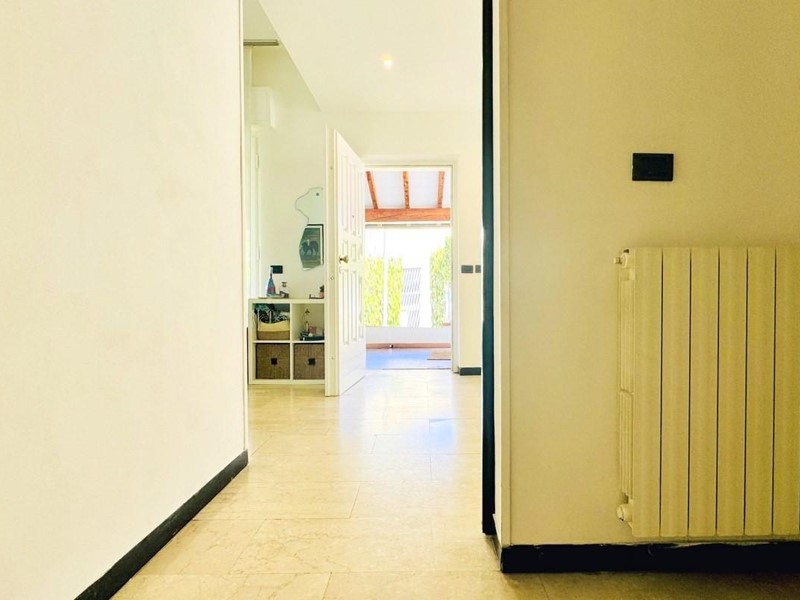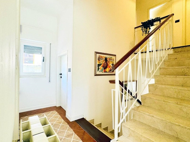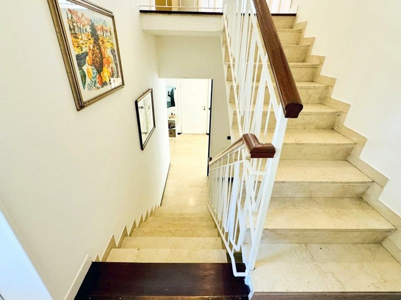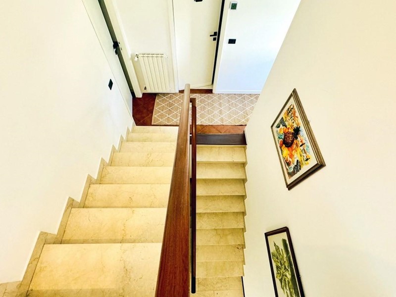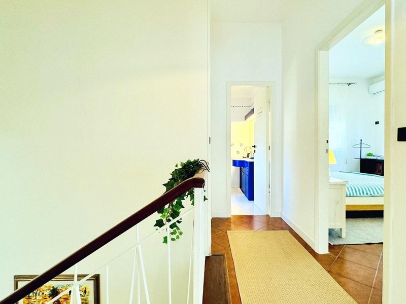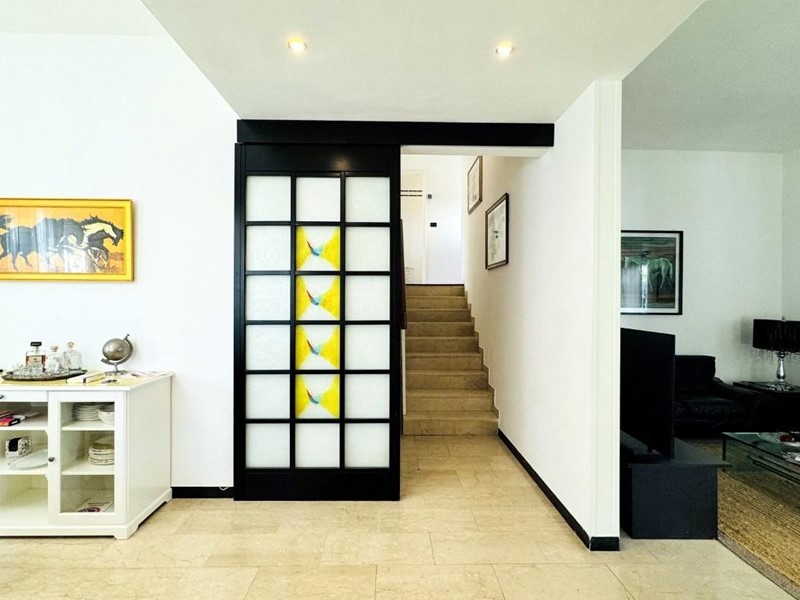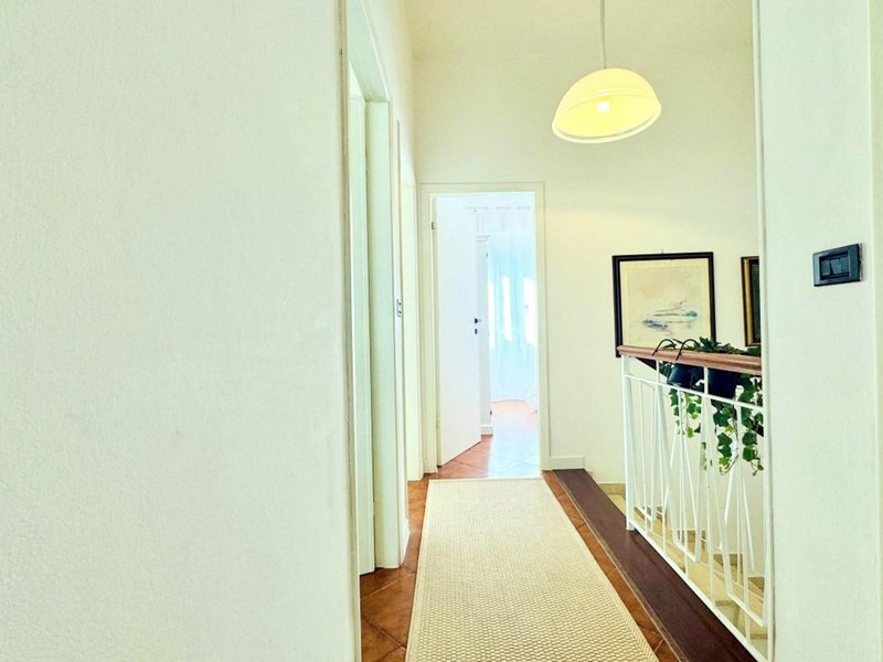 Attraverso tre gradini saliamo nel portico che fa da ingresso alla villetta. La zona giorno si sviluppa tutta al piano terra ed è suddivisa in cucina abitabile, sala da pranzo e soggiorno living. Dalla cucina si accede ad una seconda terrazza e direttamente al giardino.