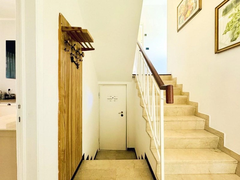 Il piano terra della villa ospita uno spazioso garage con zona lavanderia dove riporre bici e moto.