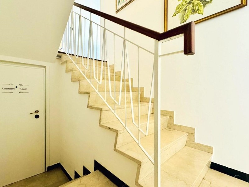 Salendo una prima rampa di scale si raggiunge il bagno con vasca e una prima camera singola (1 pax).
