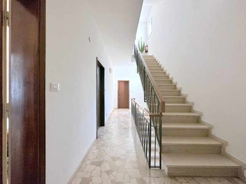 L'immobile si compone di ingresso su disimpegno, cucinotto (con lavastoviglie) e balcone tecnico vista mare, ampia sala con divano letto (1 pax), due camere matrimoniali con un lettino singolo (6 pax). Da una delle due camere matrimoniali si accede ad un altro balcone. L'abitazione dispone di due bagni, rispettivamente con doccia e vasca. Ventilatori a soffitto. Posto bici.