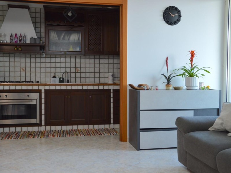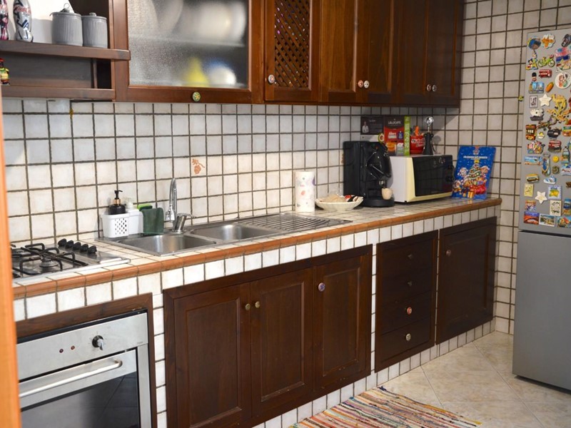 La cucina abitabile, separata e perfettamente organizzata, è dotata di arredi su misura e ottima capacità contenitiva.