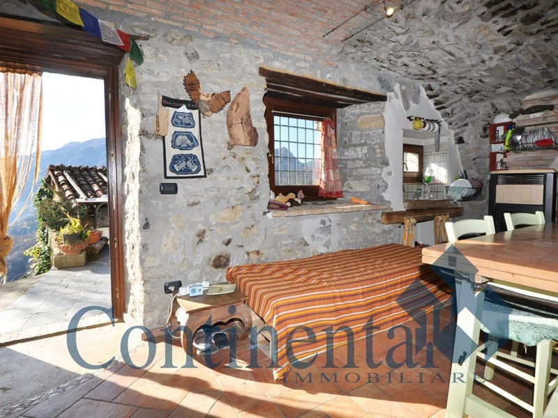 A Camerata Cornello Bergamo, località Garzani Di Sotto. Proprietà immobiliare costituita da una porzione di casa su tre livelli ed un rustico. La casa, che dista circa 30 metri dalla strada carrale viene venduta completamente arredata. Così composta: ingresso indipendente che da accesso alla cucina a piano terra dalla quale parte la scala privata che conduce al piano primo che ospita: un disimpegno, una camera da letto con balcone, bagno. A piano secondo, spaziosa camera da letto con soffitto in legno a vista e balcone panoramico. Riscaldamento garantito da stufe a pellet. A completare la proprietà: ripostiglio con accesso dall'esterno, corte terrazzata e rustico indipendente su due livelli di circa 35 mq censito deposito ed annessi 3.300 metri quadri di terreno agricolo.