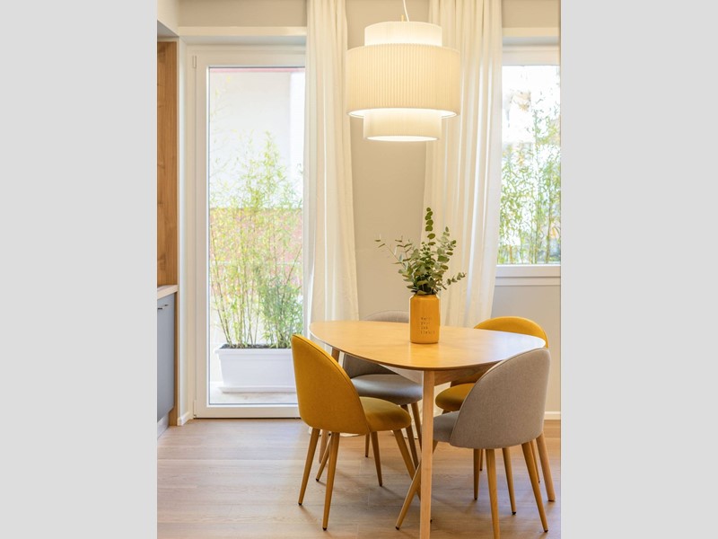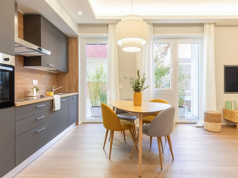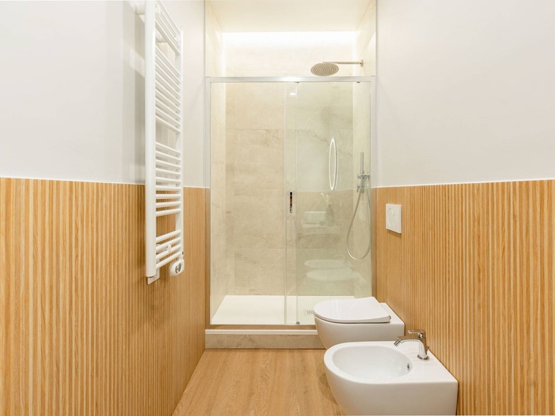 Lappartamento è stato completamente ristrutturato (e mai abitato) con materiali di pregio, infissi di ultima generazione ad alta prestazione energetica, serrande elettriche, cucina completa di elettrodomestici, luci a LED e porta dingresso blindata. Predisposizione aria condizionata in tutti gli ambienti.